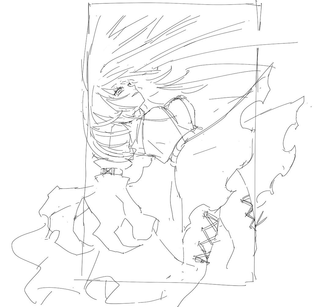 而我一直拖到了今年才開始動筆畫第一個。他指定的角色是GACHIAKUTA的亞默·恩普爾,有點山羊眼的瘦女孩(但胸部頗大)。我畫的版本好像沒有那種瘦感。