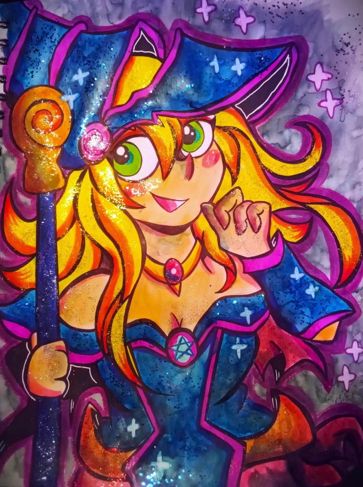 我去年和一位外國的畫友RED VELVET玩了交換繪。雙方各自指定兩個角色讓對方畫。我指定的是異世界流浪美食家的緋爾和遊戲王的黑魔導女孩。