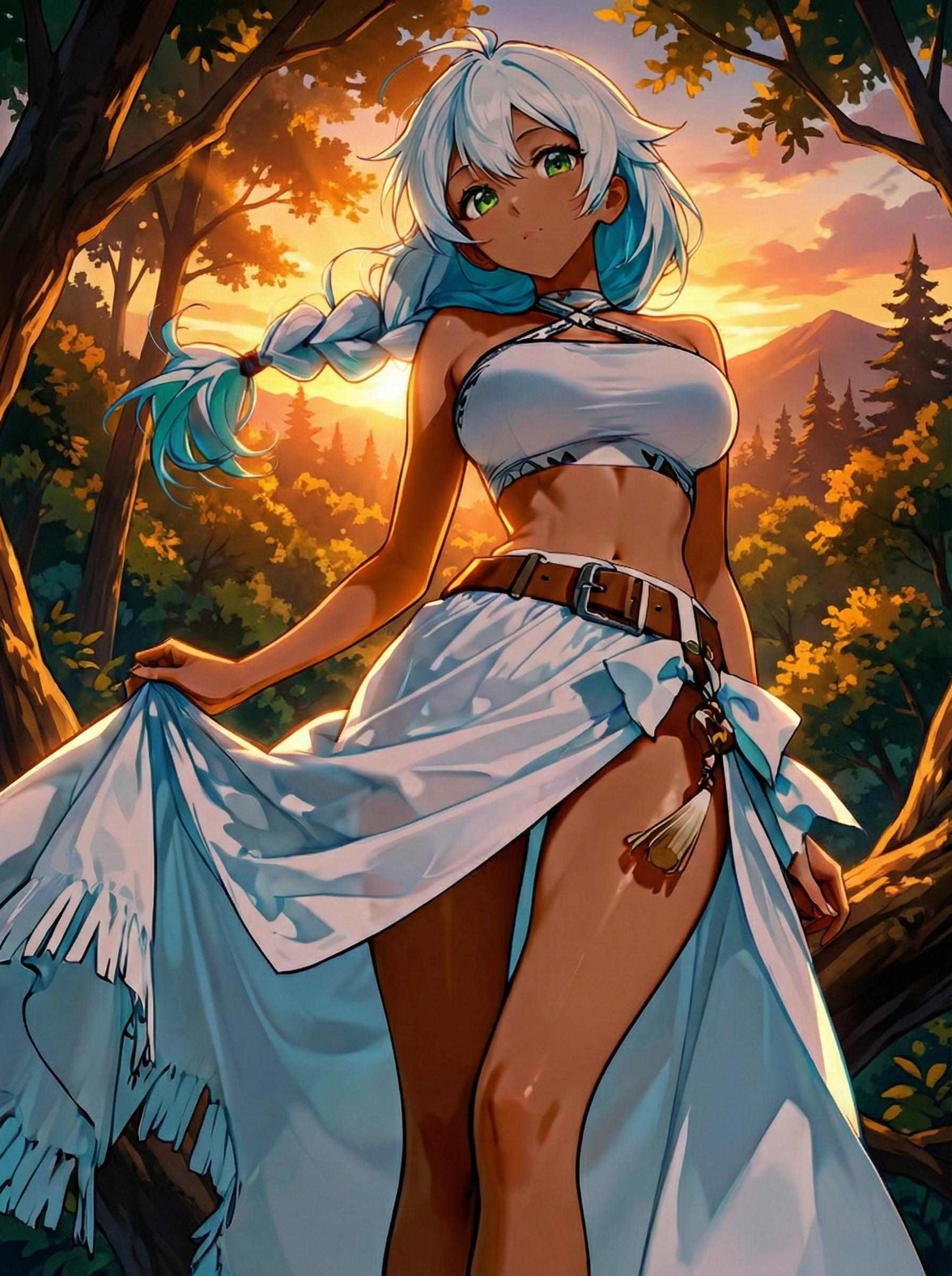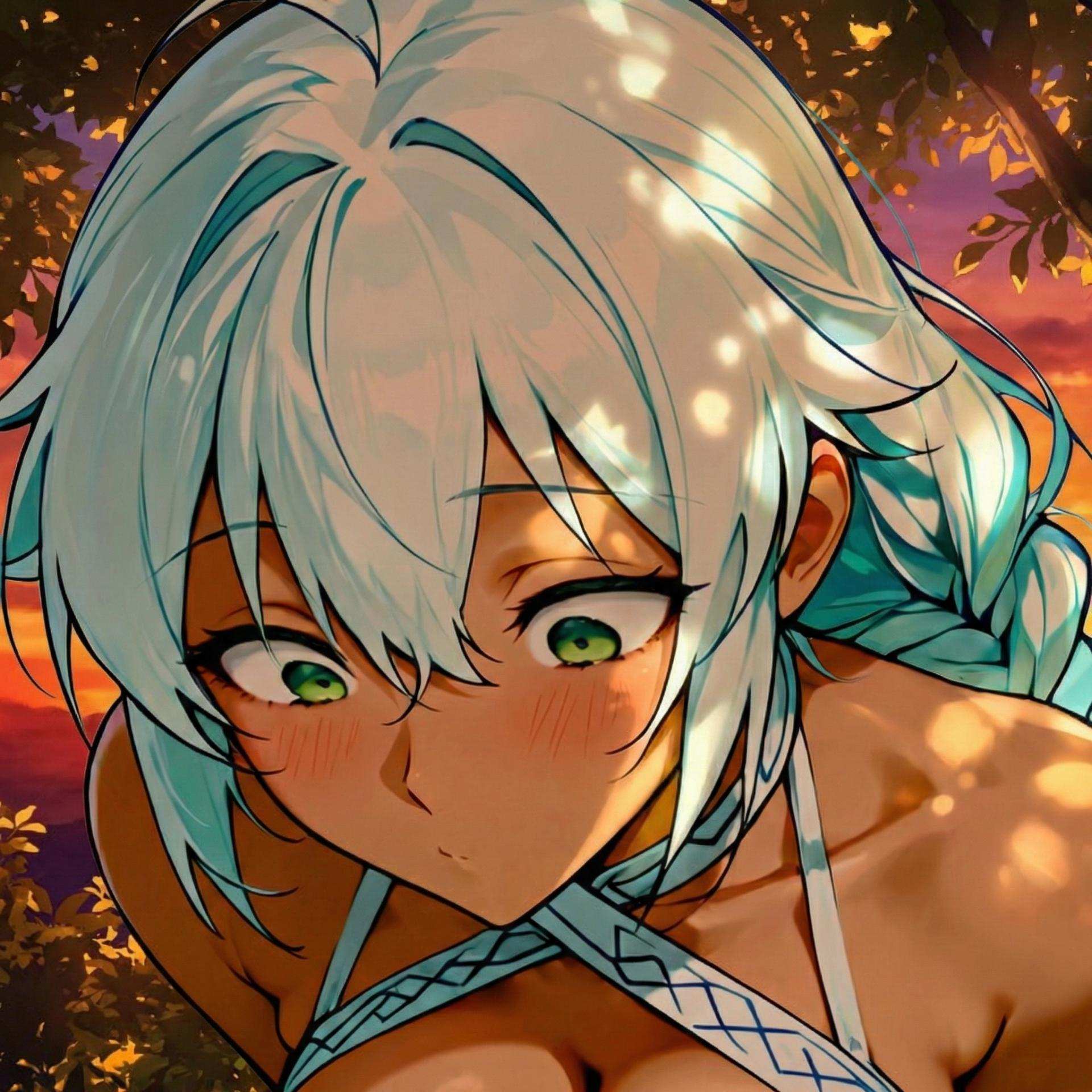 「如你所見喔。」露姬兒輕撥起一縷銀白的髮絲,在夕陽下如女神降世。