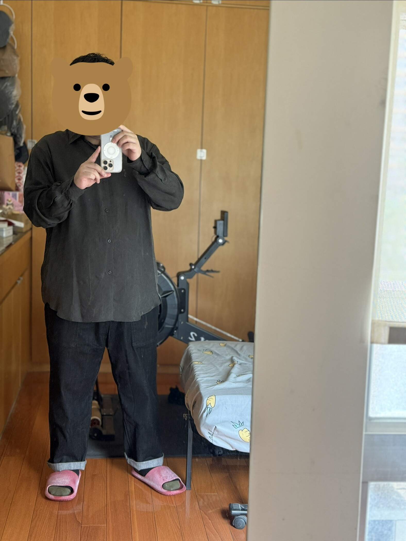 第二張實穿圖我裡面就換成了 HUMAN MADE 的素色打底短袖 T,肚子那邊就比較明顯不凸,也還好他很薄就算怕熱也能穿厚一點的打底衣。