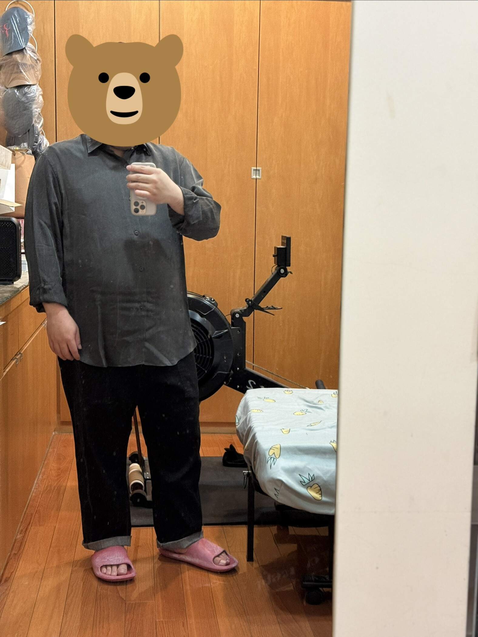 像我下面這第一張實穿圖,裡面穿優衣庫的 Airism 內衣,看起來就滿緊繃,但實際上我手臂、胸口、肚子都還有蠻多空間。