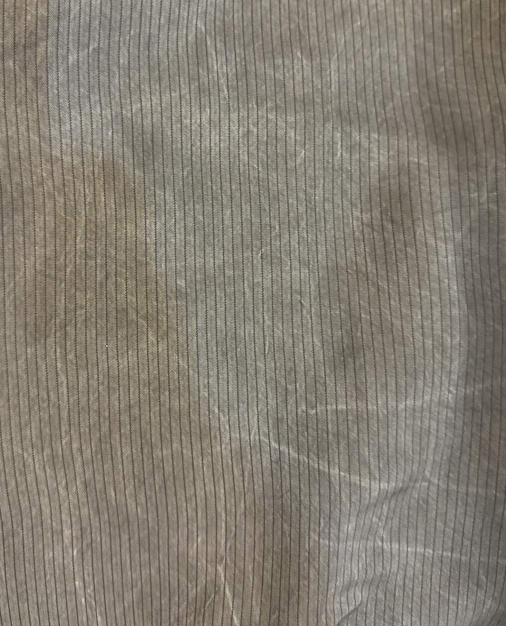 扯有點遠了,回到這件先染條紋長袖襯衫,最大的賣點就是他布料染黑但卻帶點灰的那種霧氣感,實際上手和照片的印象差異蠻大,我本來以為會是有點厚度的牛津布,上手卻發現是超級順滑又薄如禪翼的布料,重新看了商品頁面才發現它是日本製、百分之百的銅氨纖維。