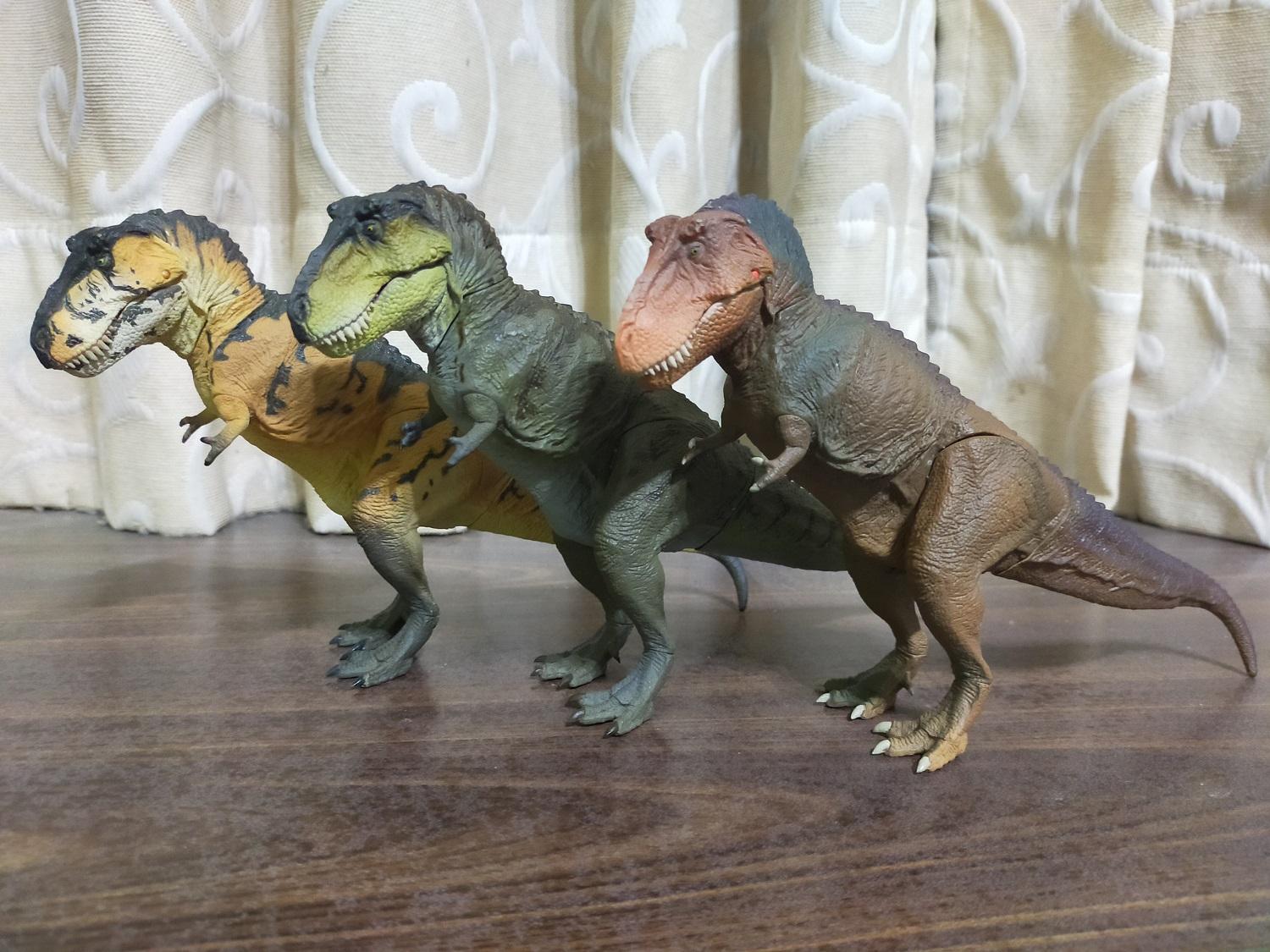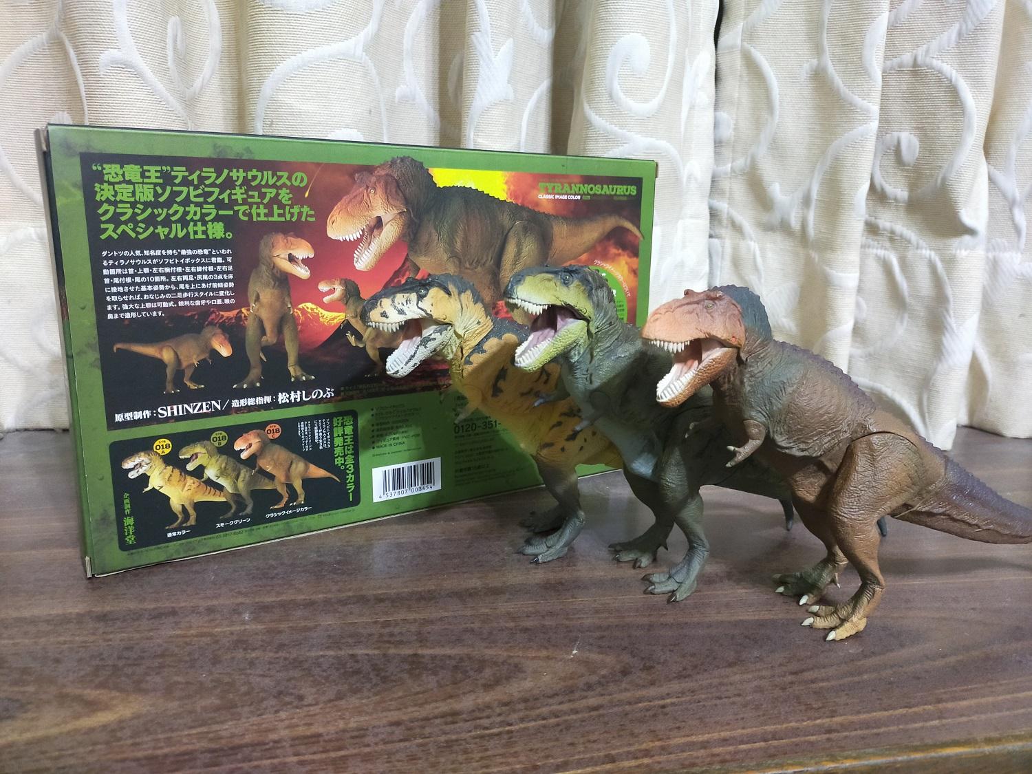 最後就用三款軟膠和經典褐的外盒一起來個全員大合體,作為本篇的最後總結尾吧!即使這輩子恐怕是盼不到其他種類的恐龍在海洋堂軟膠系列的作品,還是感謝松村老師費心盡力的帶給我們這麼精美寫實的恐龍之王軟膠!