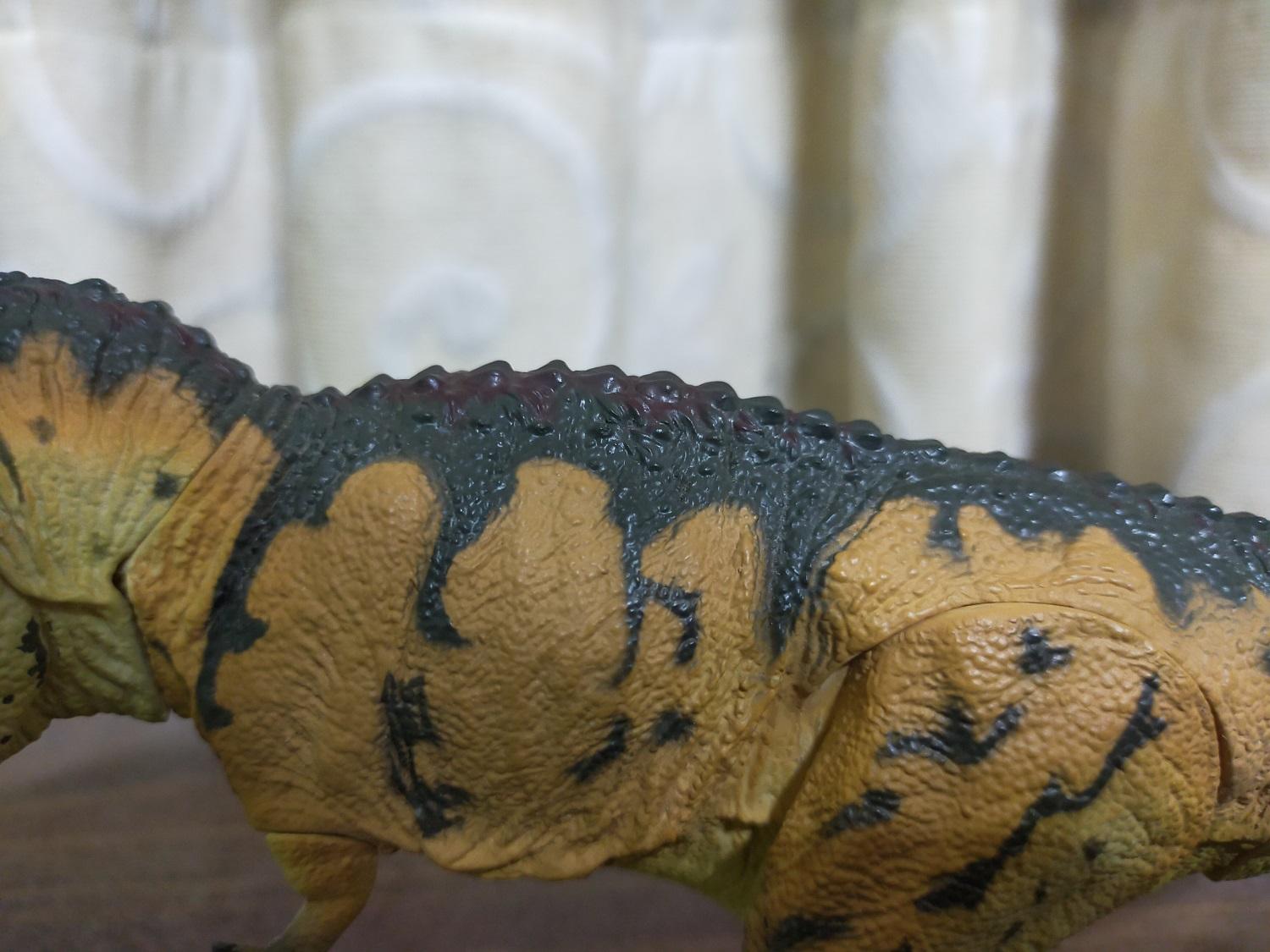 來個頭部近距離特寫。說實在話,個人還挺喜歡這個臉部塗色的樣式跟風格的,因為看著就覺得很有那種屬於1999元祖版《與恐龍共舞》片中的登場生物在體色花紋方面,都會具備的貫有調性(笑)