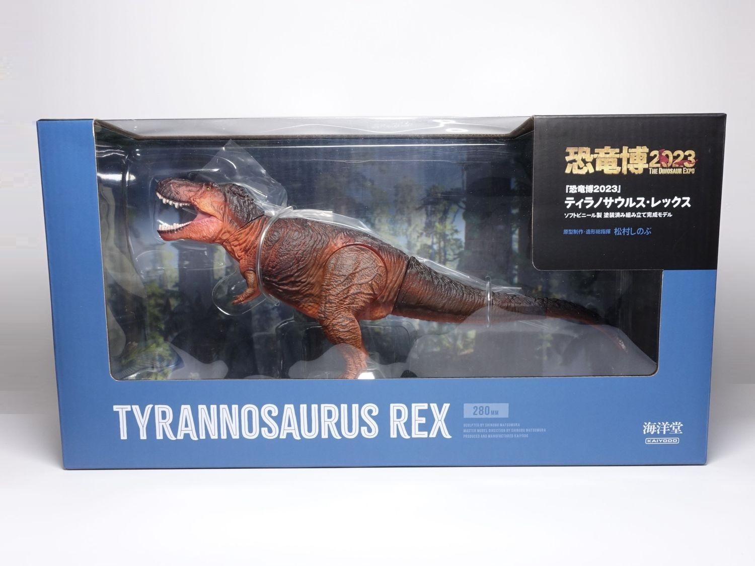 這是2023年於日本東京上野國立科學博物館舉辦的恐龍博覽會展場限定販售的盒裝霸王龍軟膠,原型方面同樣由松村老師負責操刀監製,發行廠也是海洋堂。即使尺寸規格與今次主題的產品幾乎如同,外觀和姿態上卻更講求以科學依據為主的寫實還原,堪稱難得佳作;只不過有個小可惜之處在於可動關節不只減少,連嘴部也居然是靜態不可動。即使是日本恐龍展場限定發售,最終雷某還是決定選擇放生(笑)