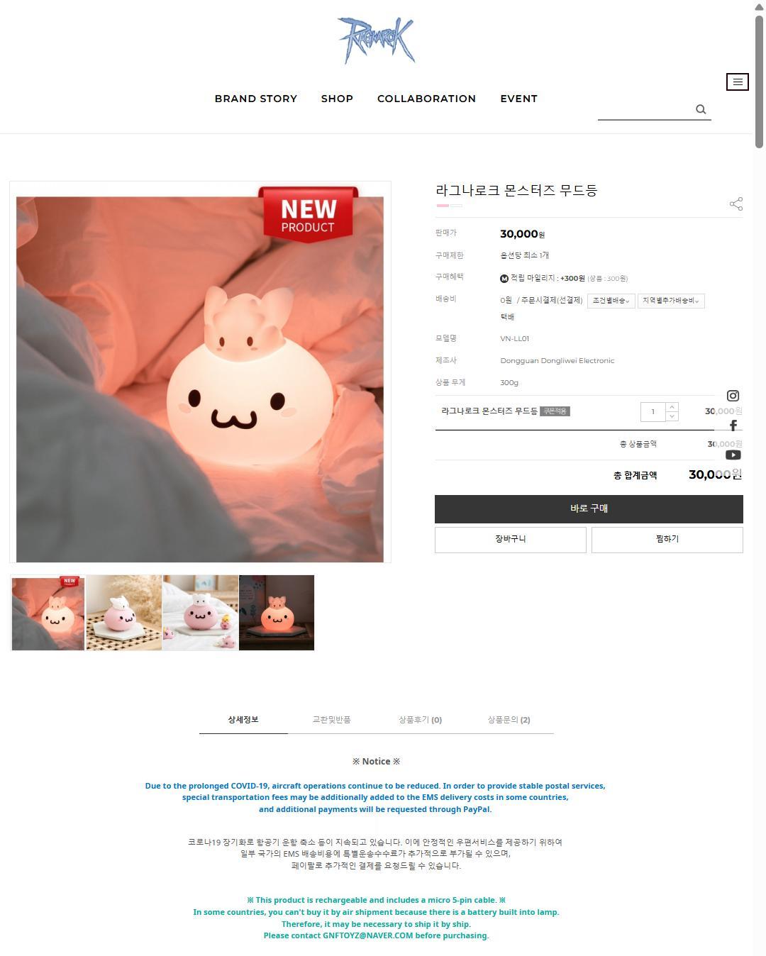 產品名稱:Ragnarok 怪物氣氛燈(Monster Mood Lamp;含 Poring & Lunatic)型號:VN-LL01