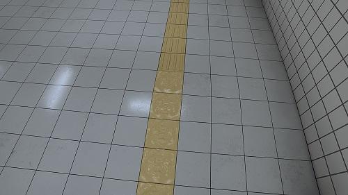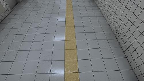 (34)直線黃色的磁磚變了圖案。