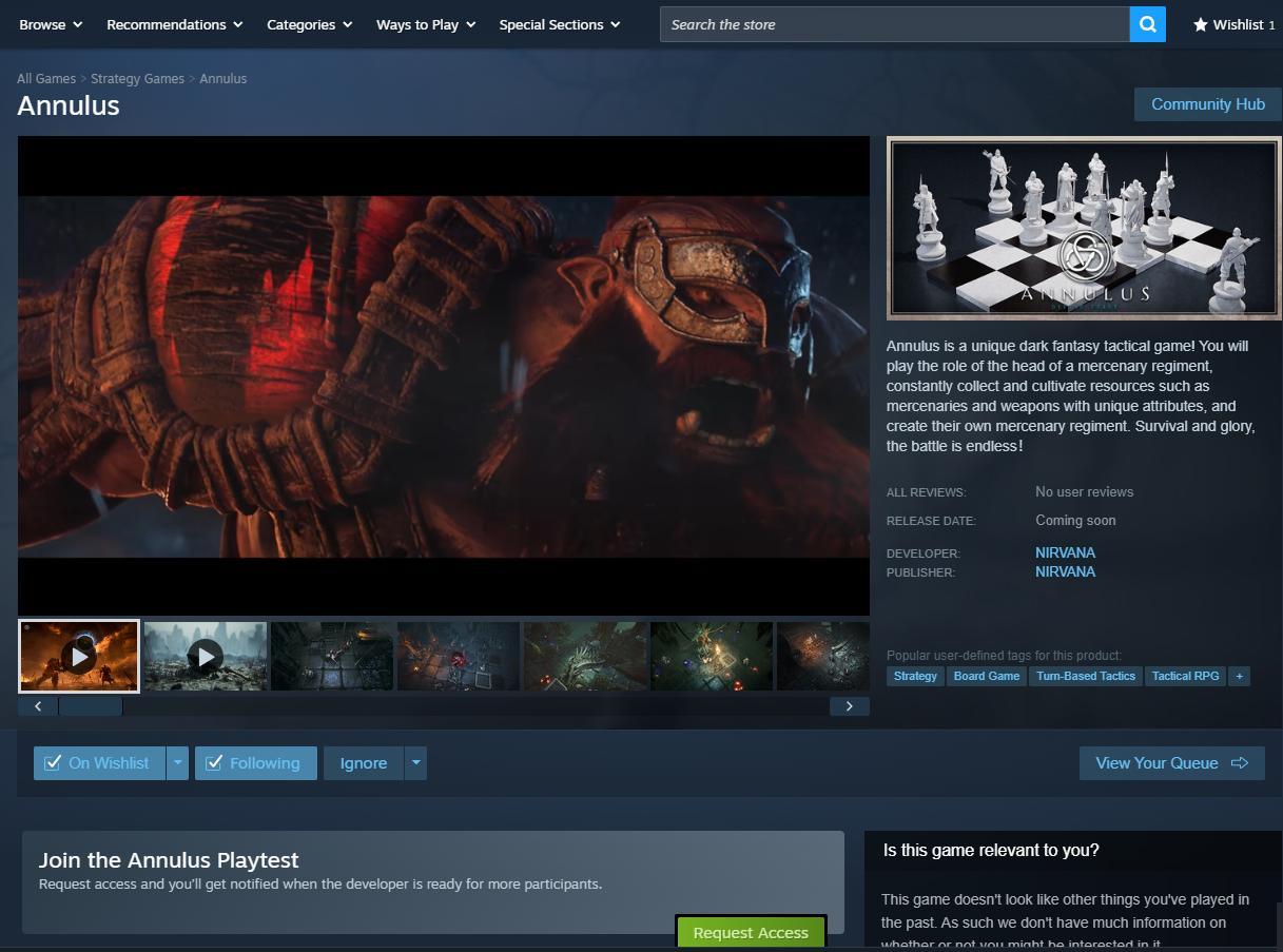 測試資格獲取:點擊Steam上環形戰爭的商店頁面,在Playtest處,點擊“請求存取權限”,獲得測試資格。