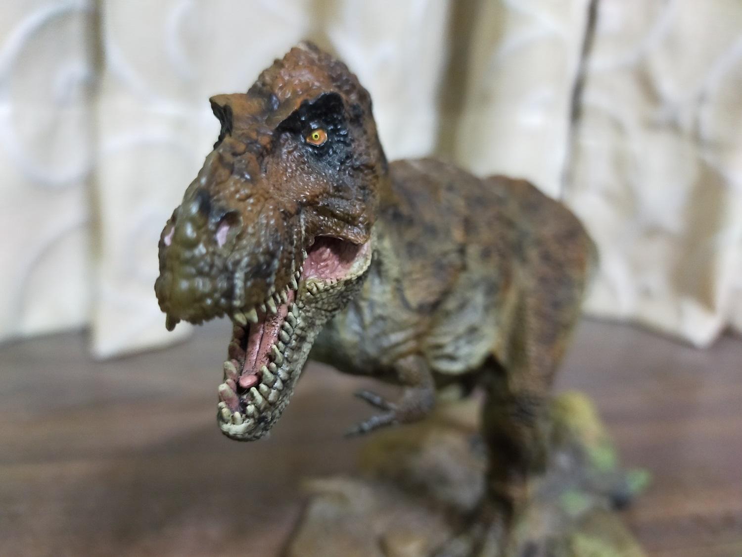 來和霸王龍比較一下。雙方的塗裝風格,一個鮮豔、一個樸素,對比差異真是明顯(笑)