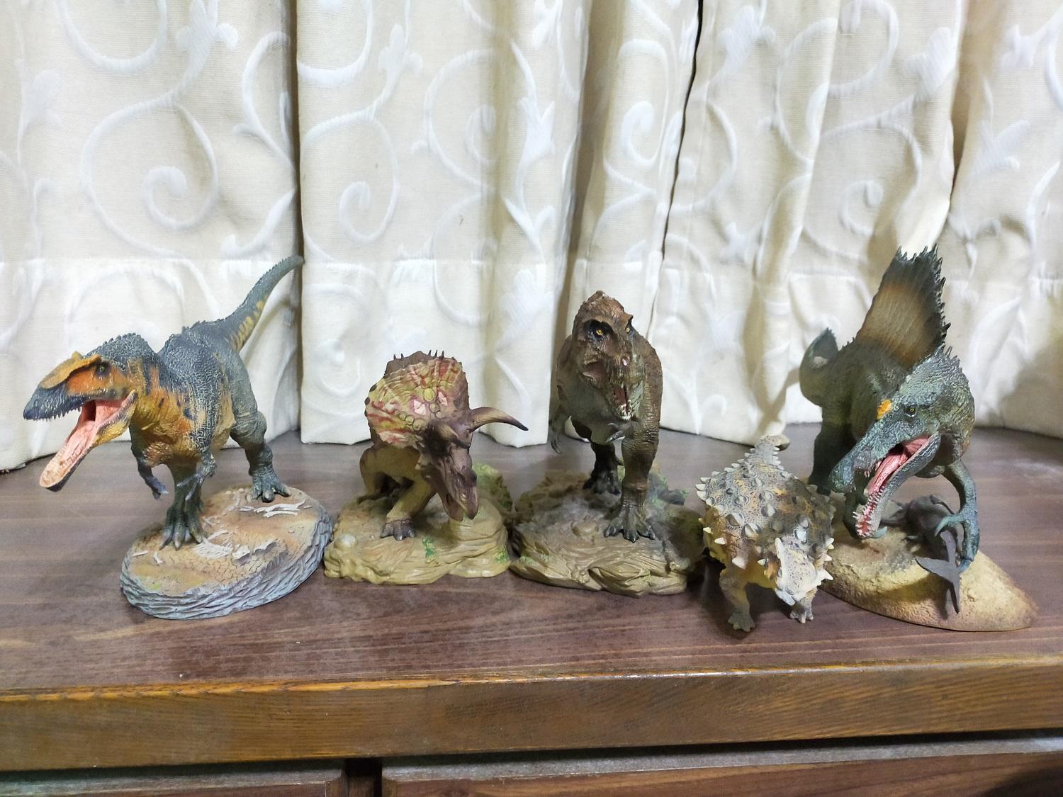 到這邊,難得一次介紹五款來自PNSO的恐龍模型就打了這麼長的一大串文章,也是辛苦各位能秉持耐心看到這裡,最後就把這五隻恐龍集結起來拍個大合照,作為本篇的最後總結尾囉!