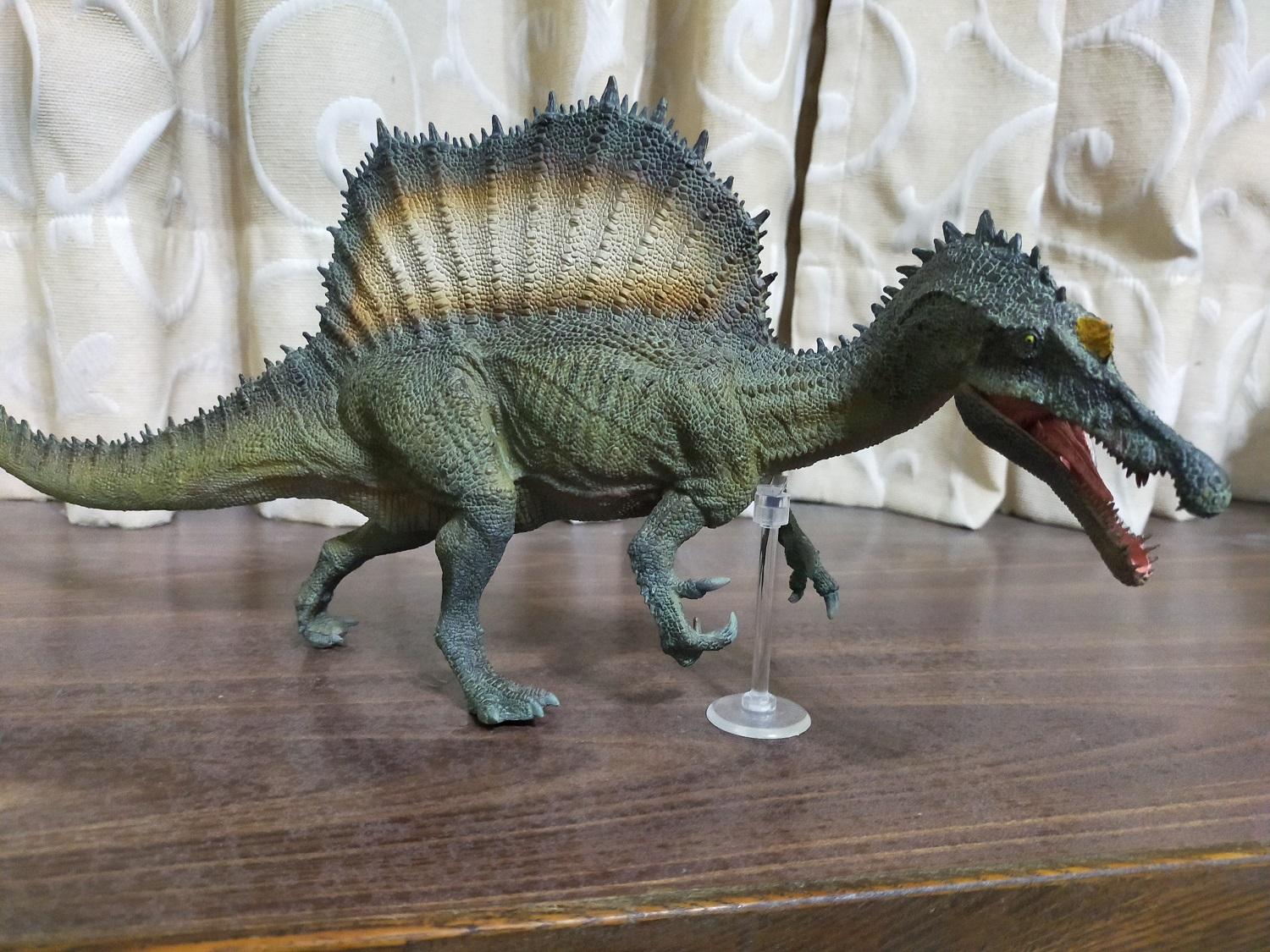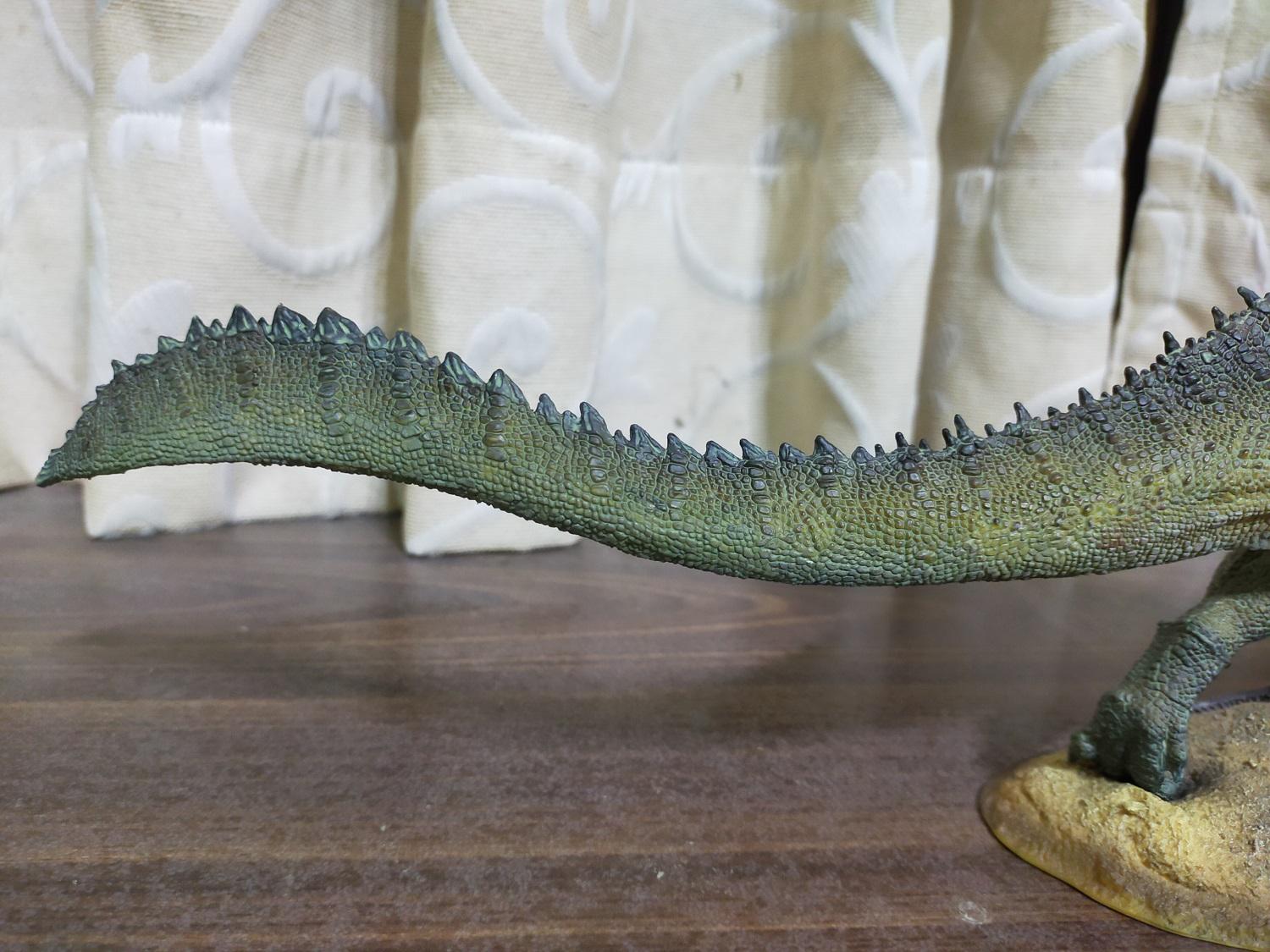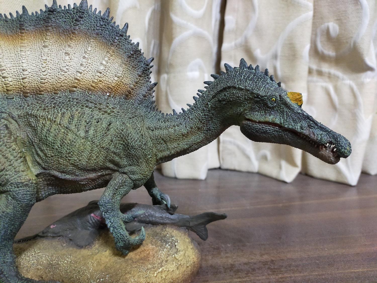 能像PNSO這樣大尾又近乎寫實風格且不走電影路線的棘龍原型,在當時是真的不甚多見,尤其是對雷某來說,霸王龍、巨獸龍、棘龍都好,少了其中任何一隻就會喪失了那個價值與風采,再者早期把這三者全部出齊的品牌也是實屬稀罕,所以自然就不能錯過這隻PNSO棘龍啦!