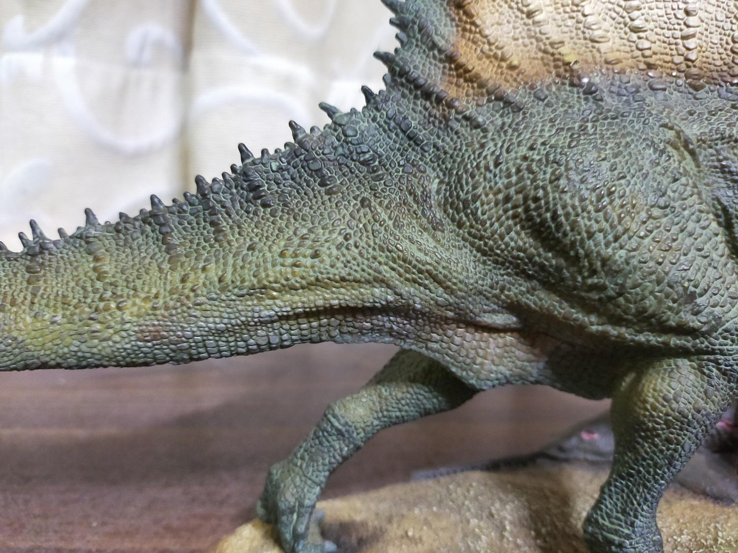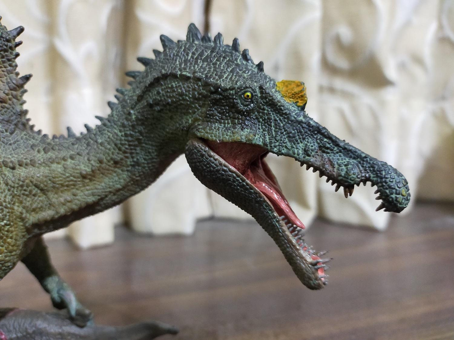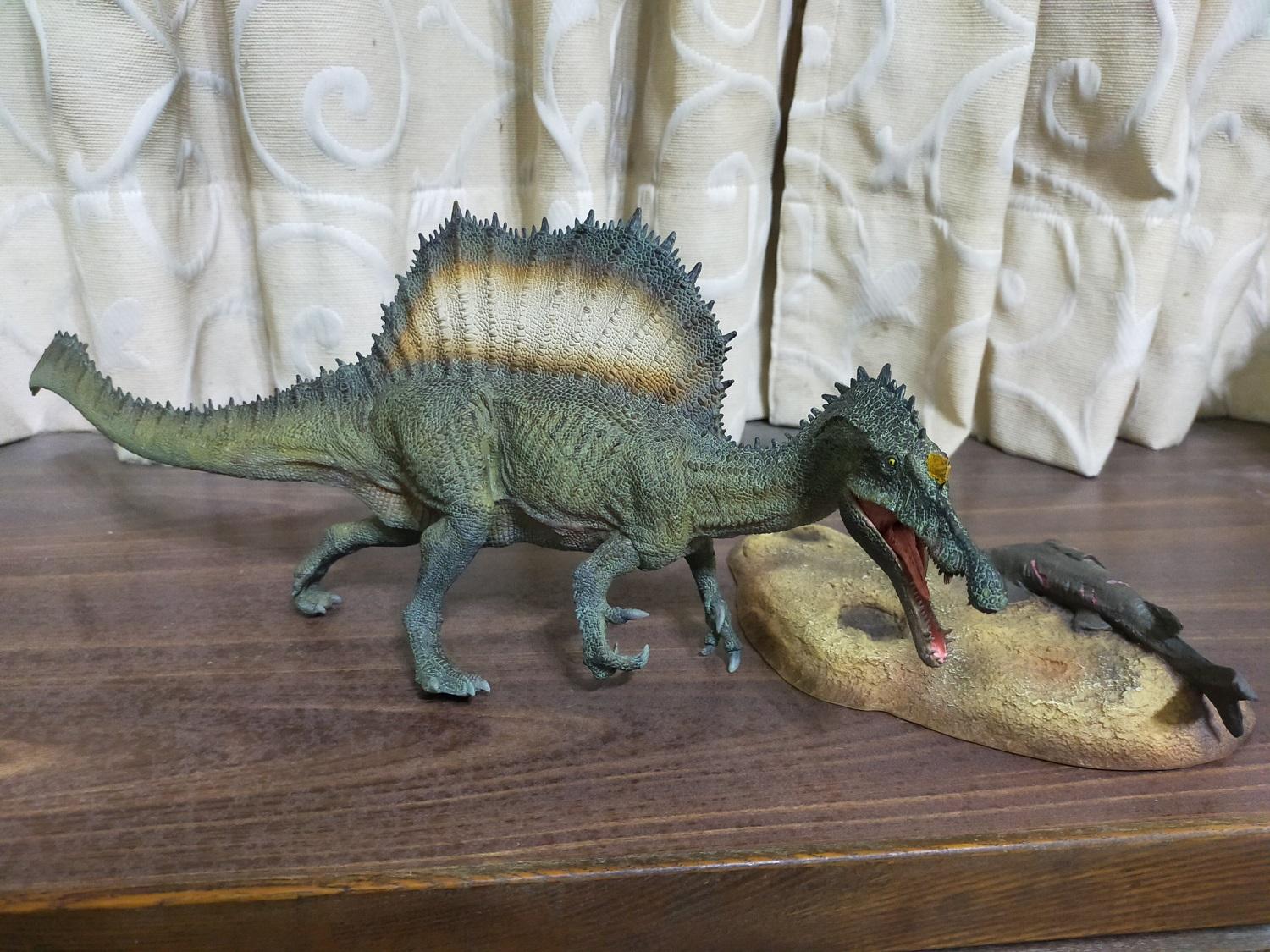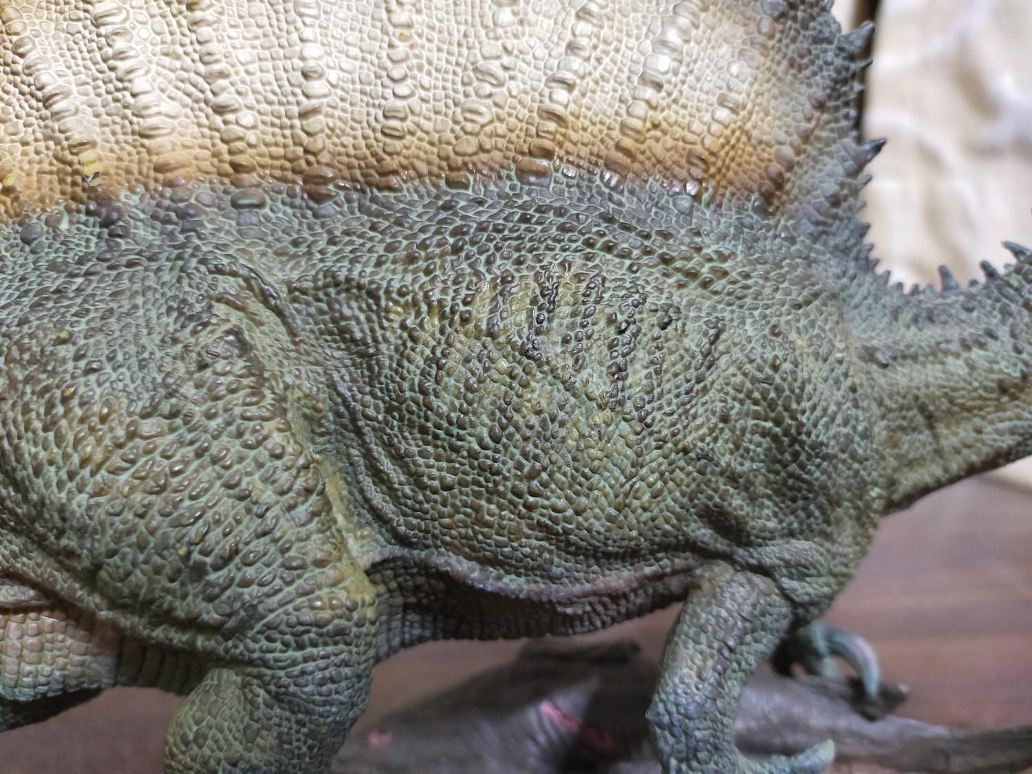 能像PNSO這樣大尾又近乎寫實風格且不走電影路線的棘龍原型,在當時是真的不甚多見,尤其是對雷某來說,霸王龍、巨獸龍、棘龍都好,少了其中任何一隻就會喪失了那個價值與風采,再者早期把這三者全部出齊的品牌也是實屬稀罕,所以自然就不能錯過這隻PNSO棘龍啦!