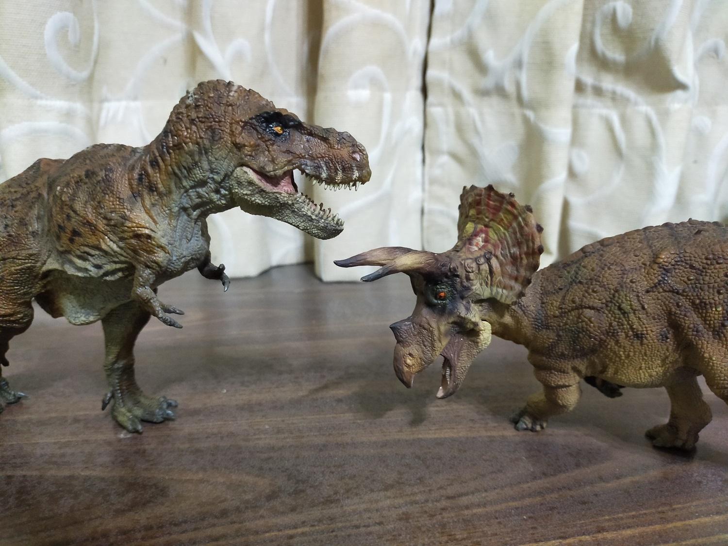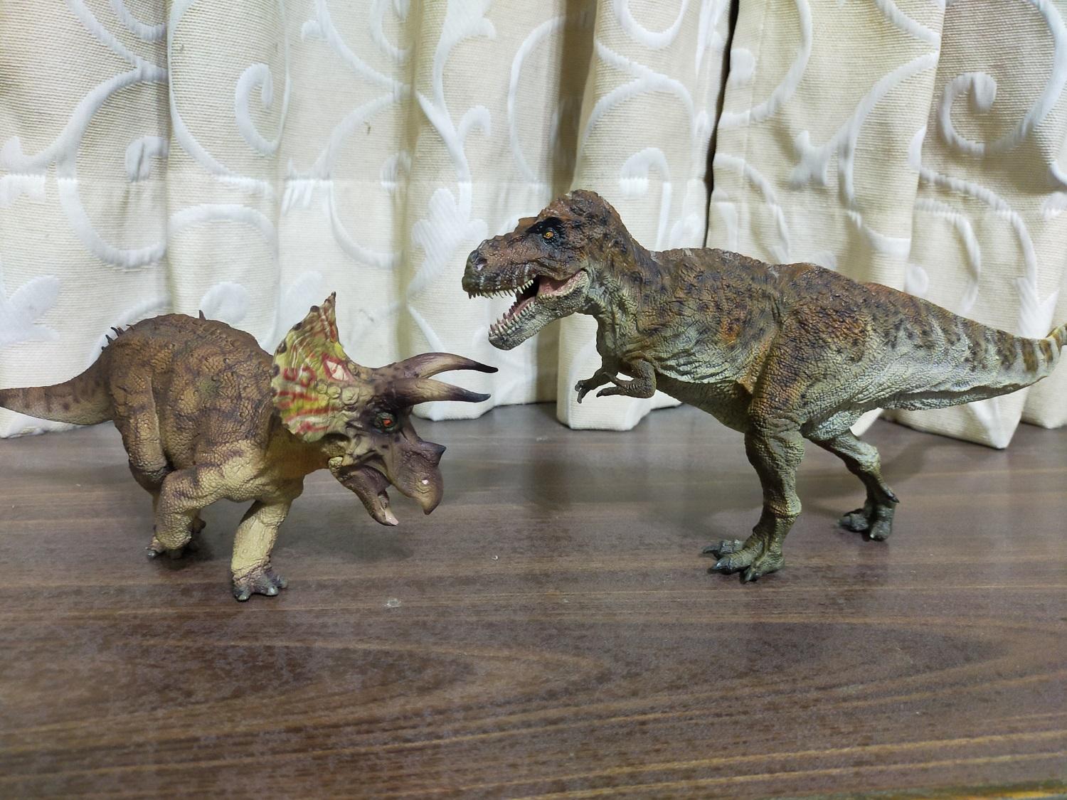 無論當時是否作為同系列的姊妹作,既然有了上一隻霸王龍,這隻三角龍又豈能錯過?雖然也有點忘了當初是怎麼入手的,最終就還是收來與霸王龍一起作為白堊紀最大敵手的組合了(笑)