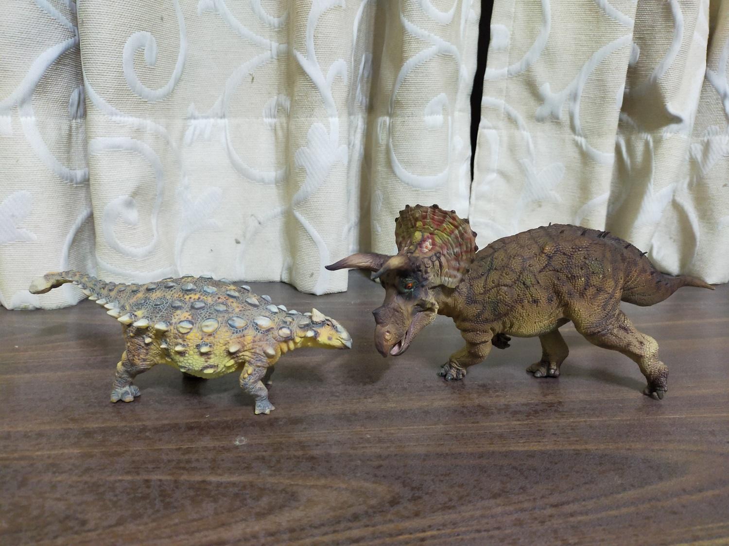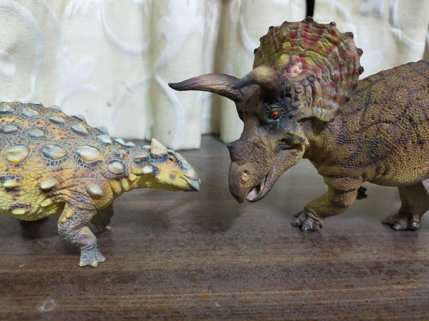 和三角龍擺在一起,覺得比例意外的搭,還是說這隻甲龍剛好也是1:35 Scale的緣故?
