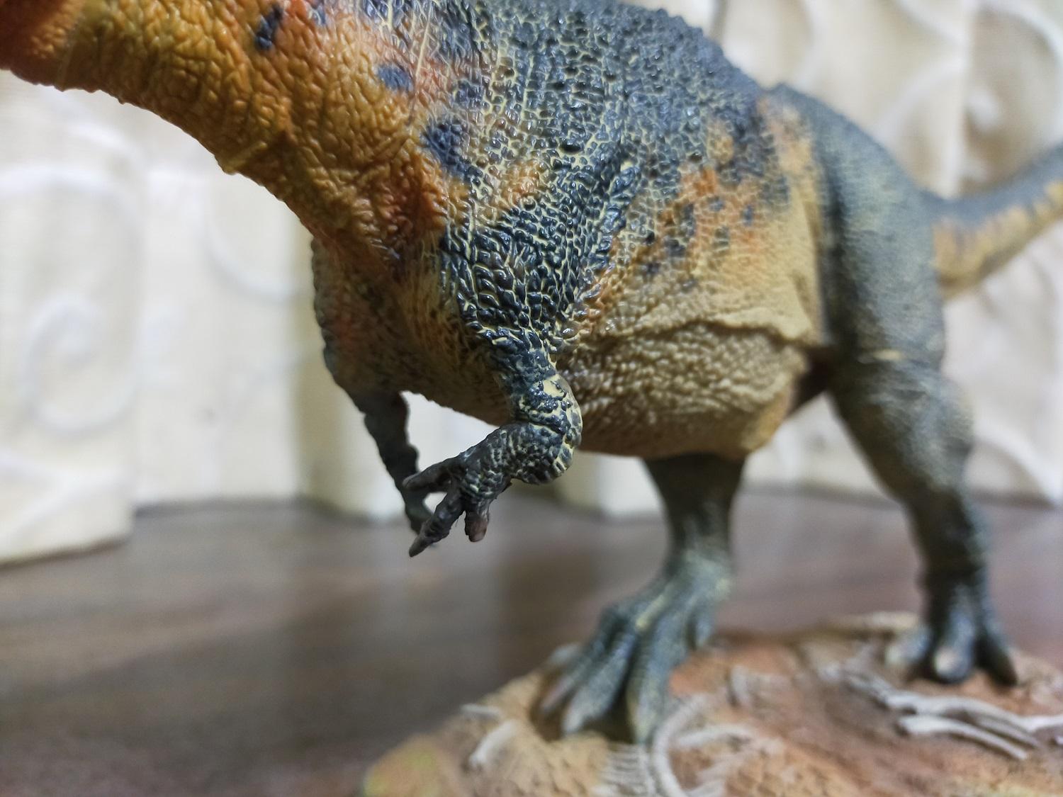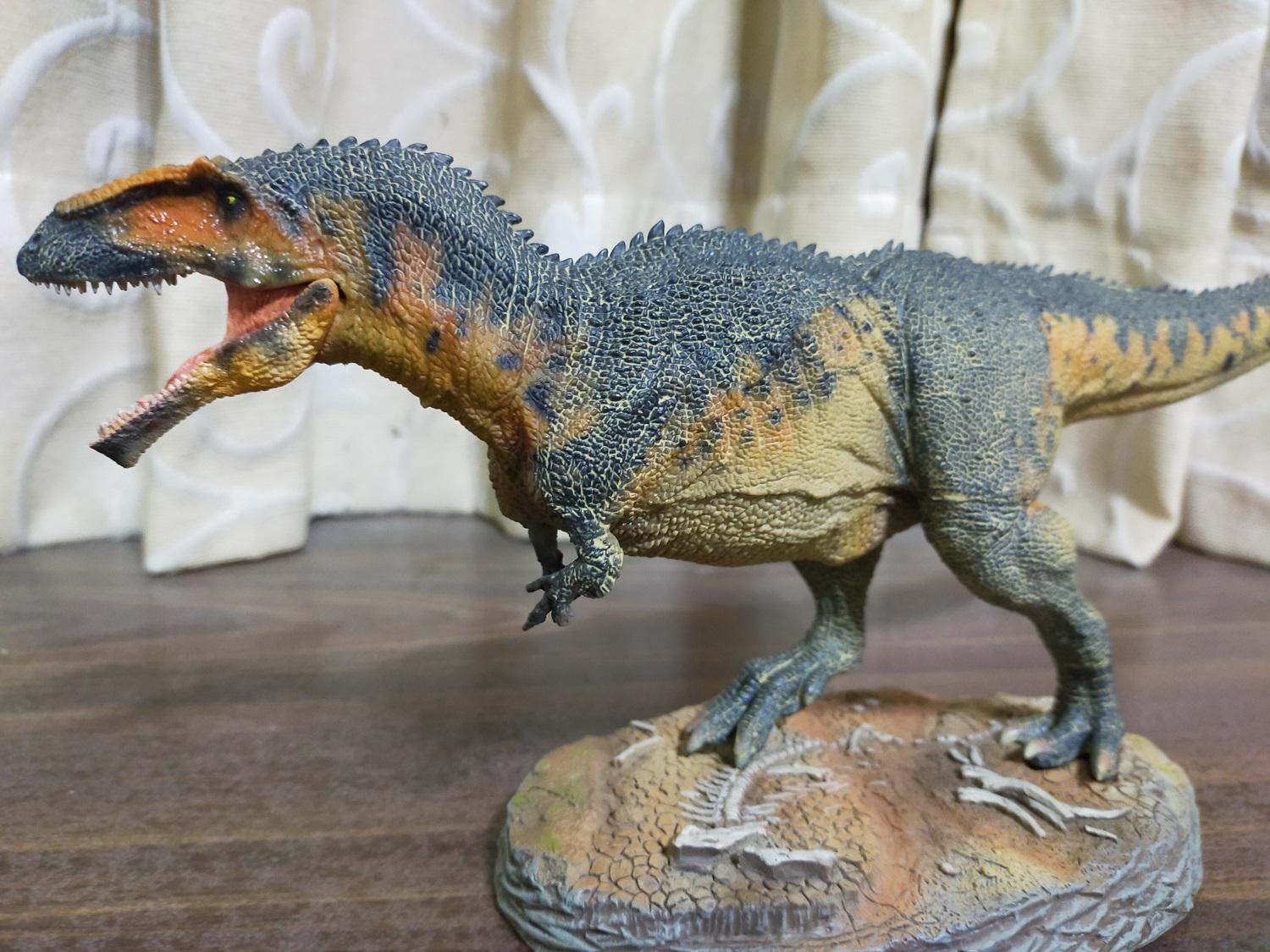繼霸王龍和巨獸龍後,終於輪到了巨型獸腳類三巨頭的最後一位成員啦!一方面尺寸有夠巨大,即使採用的復原形象依然有點偏向2014年的四足步行版,最終仍屬於非電影版的科學依據復原路線,又是自己向來也十足熱衷的恐龍種類之一,自然就得收來和同系列的霸王龍與巨獸龍來完成巨型獸腳類三巨頭的最後一塊拼圖啦!