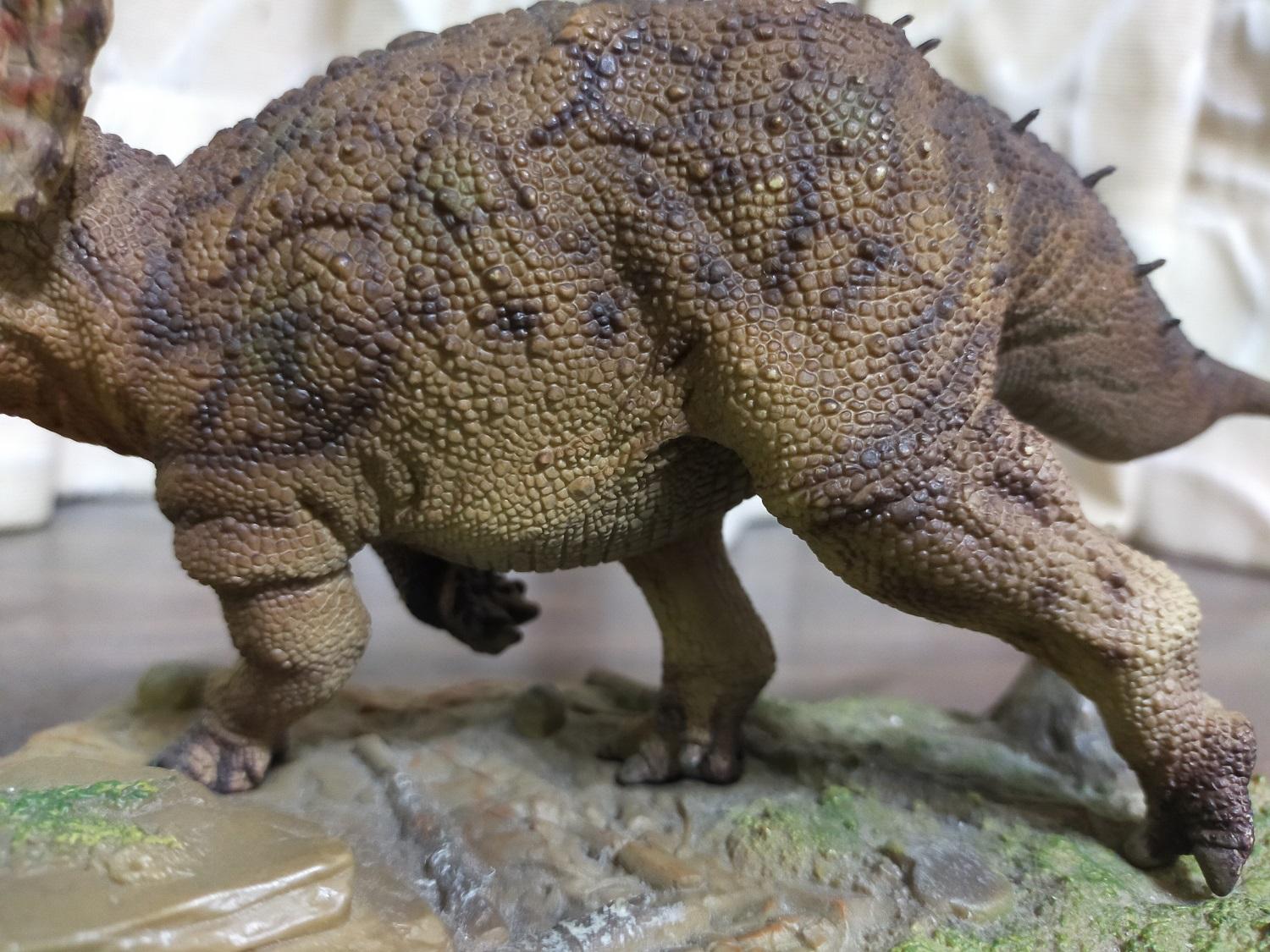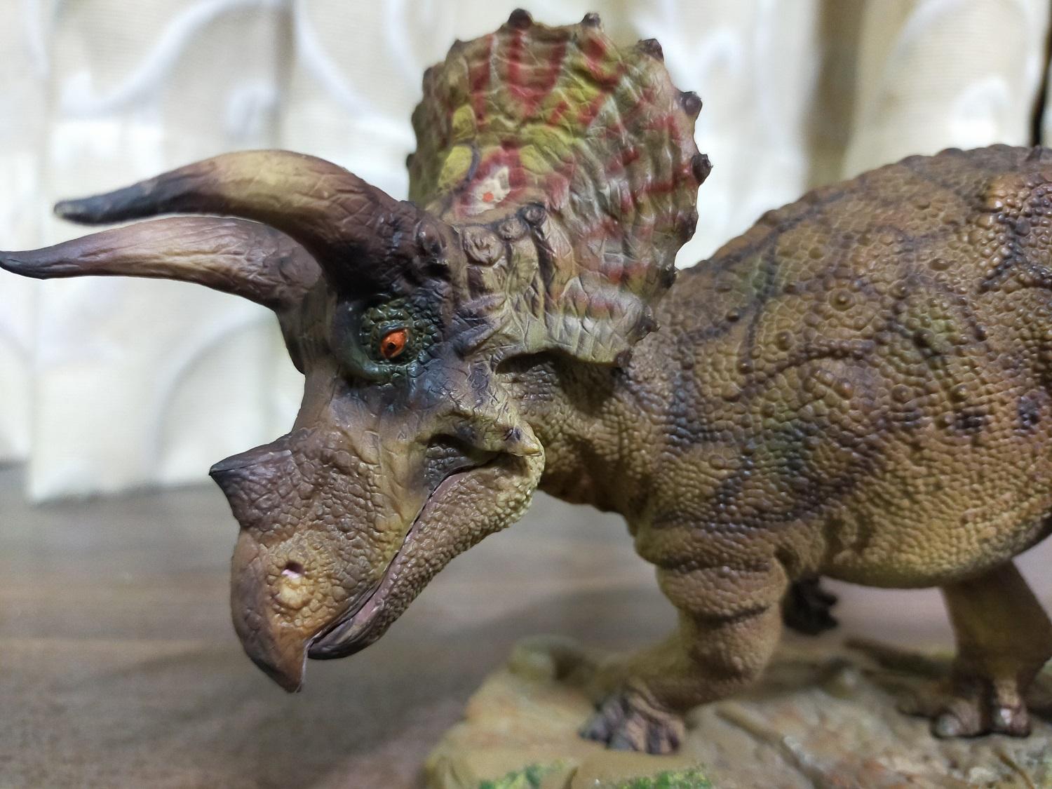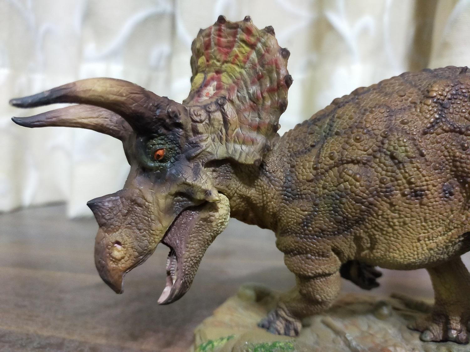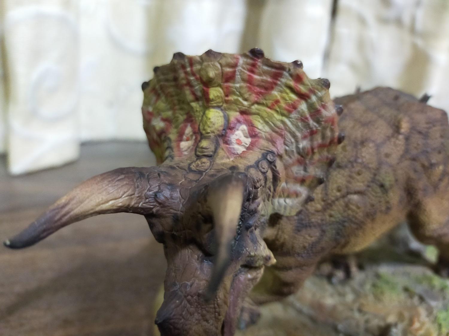 與其他常見的三角龍原型不同在有特地給頸盾摺邊加上鮮艷圖案