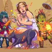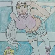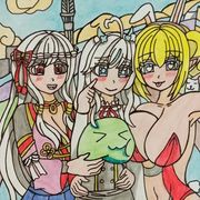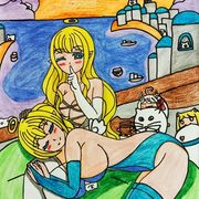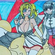 因為他沒有指定角色,讓我自由發揮,所以我就畫了另一個巴友愛德莉亞的OC,金毛精靈愛莉,以及阿鼠本鼠。