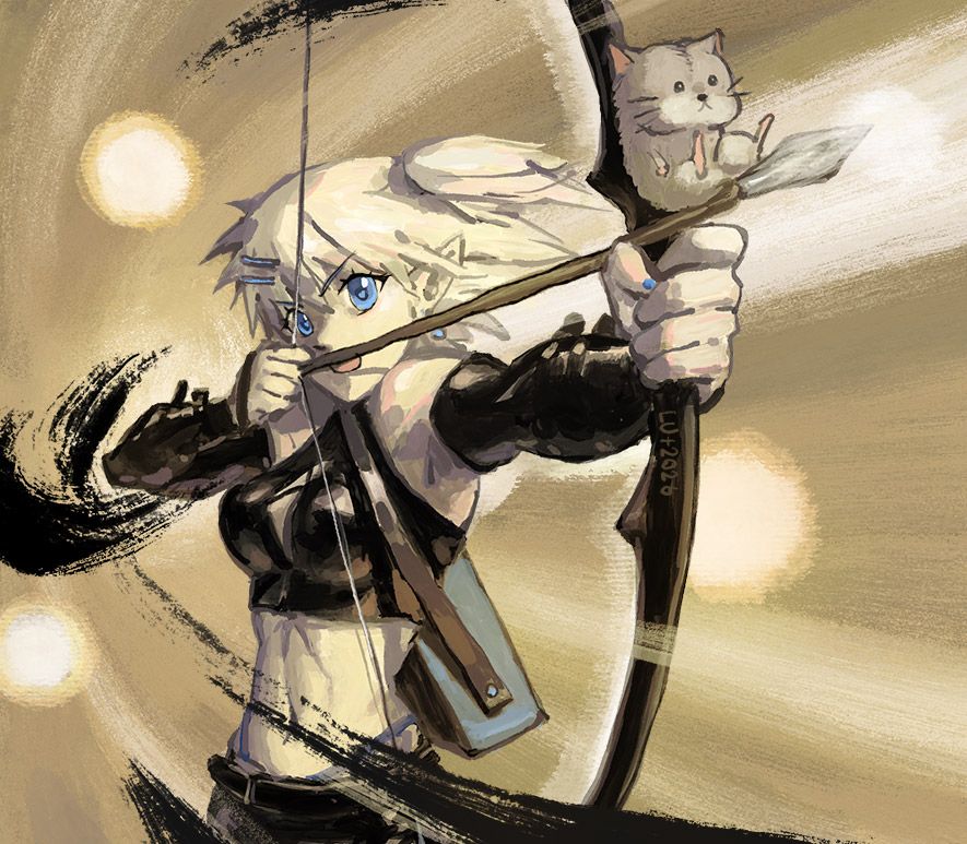 和上一張給慕絲的水墨那張不同,這次也是厚塗。圖中用一點透視的視角畫愛莉拉弓的姿勢。箭在弦上,鼠在箭上,這一箭會把阿鼠送到哪呢?