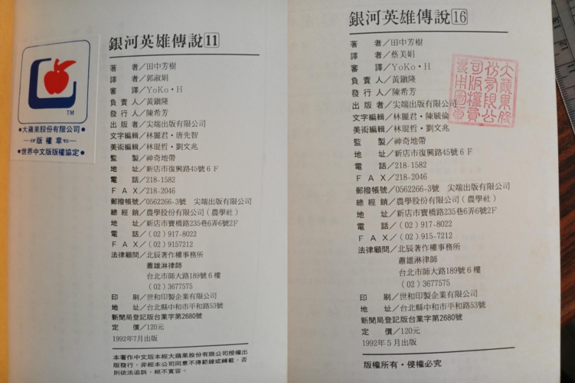 這大蘋果也不知道是何方神聖,既不是日本版權方的德間書店、東京創元社,也不是台灣印刷出版方的尖端出版,感覺就像是個版權上的中轉站?後來大概是經過了 301 條款的整頓,尖端拿到完整的代理版權,才有現在的新版或是經典版: