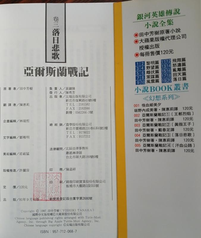 尖端之所以不再出版舊版,似乎是因為版權的關係?當年…大概是 90 年代,版權很混亂,像黑皮版最後一頁的版權頁: