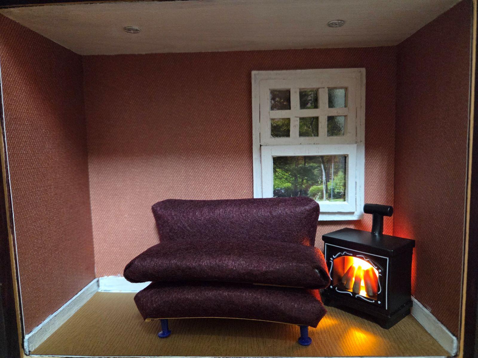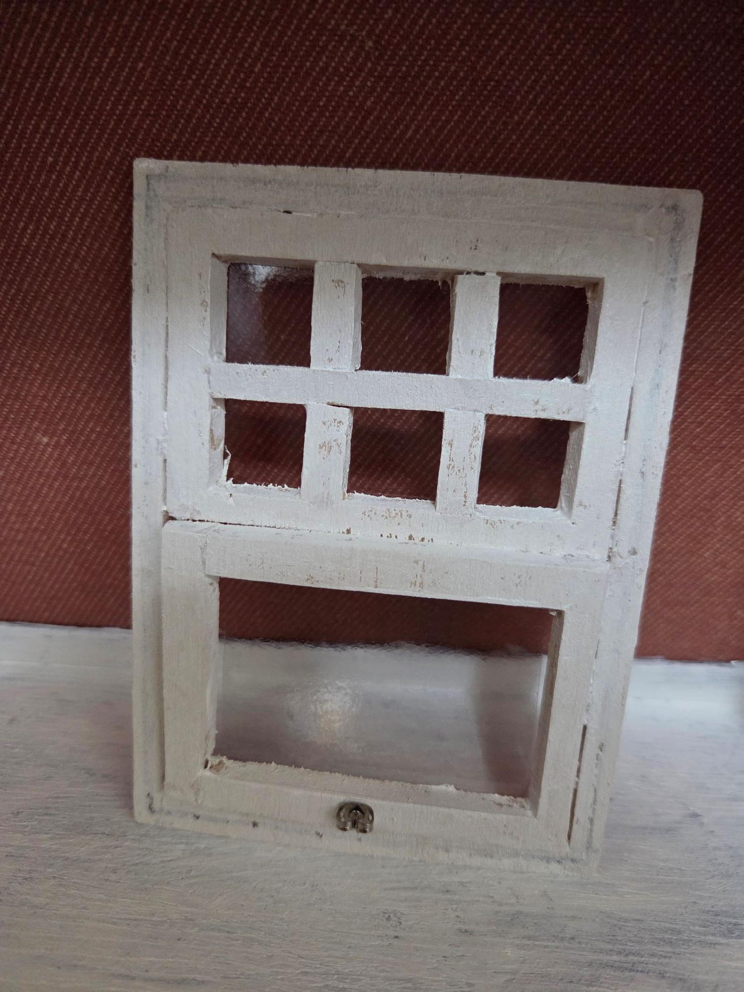 用飛機木做了一扇二十世紀初的窗戶,地板顏色不一樣是因為反悔想改顏色但改完更後悔