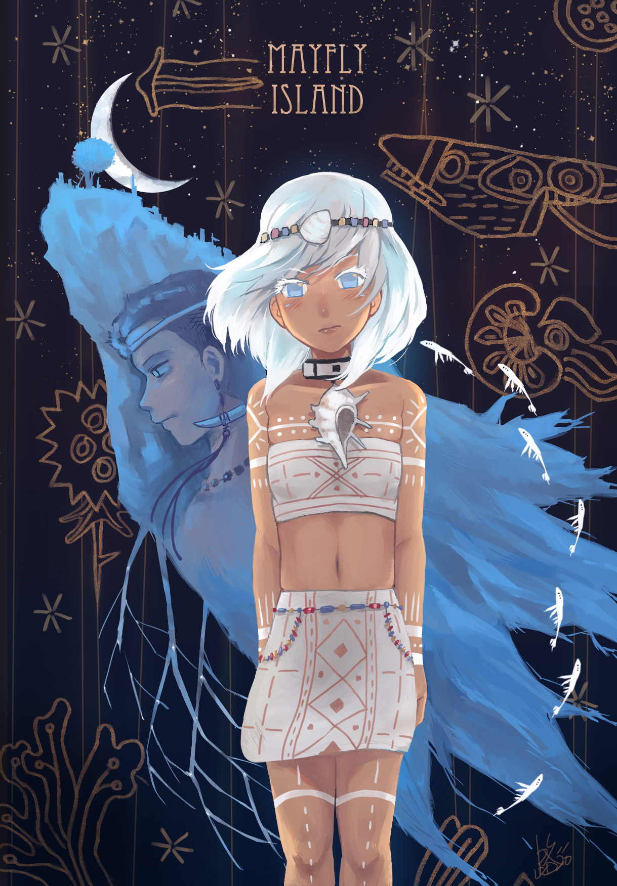 最後分享一張我在幾年前前傳剛上市不久所畫的圖。這張圖現在看起來,也還行吧,就是為什麼當時要把白毛的黎卡畫得那麼...僵直啊。手腳併那麼攏是在幹嘛XD?