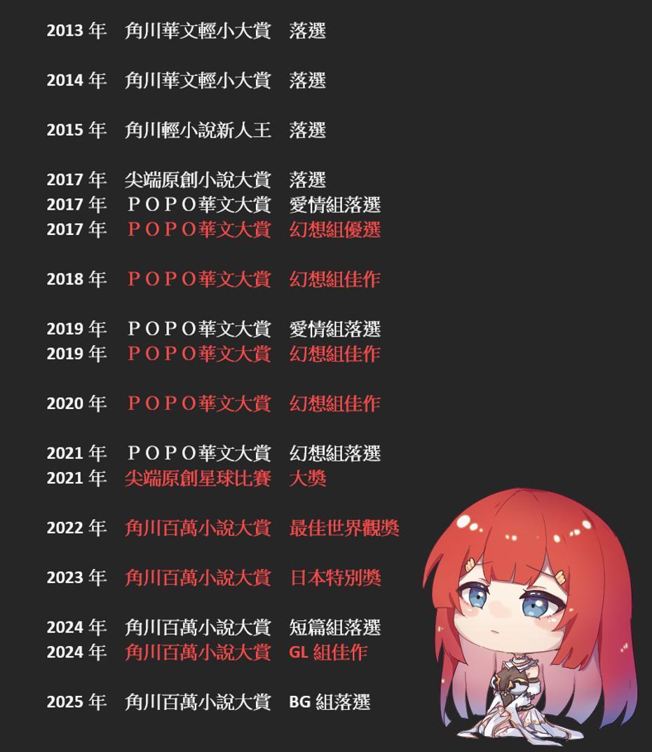 人生第一次參加的小說比賽就是台灣角川舉辦的華文輕小說大賞。