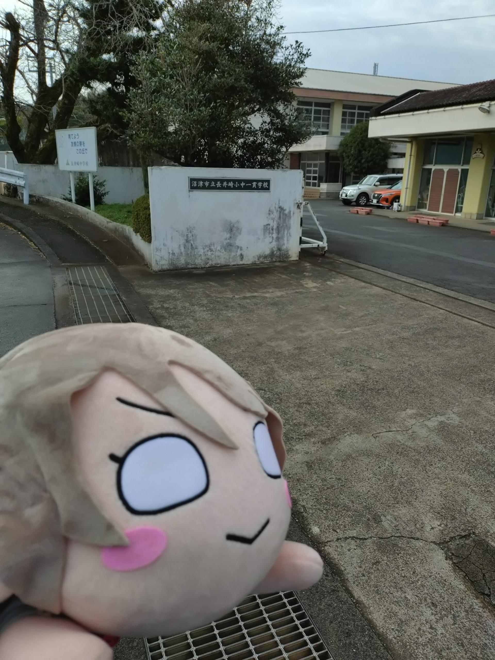 搭著公車沿著內浦灣開到終點三津海洋水族館後,接著二話不說就是直衝長井崎中學校!動畫中廢校,但現實中反而跑去併別人的學校,或許算是一種逆逆輸入吧。沿途都是蜜柑樹和漁船,走到山腳下的時候甚至看到了直升機從上空飛過... 是小原大小姐要去上課了嗎?繼續努力爬山,景色令我忘卻曾經小腿遭受撕裂般的痛苦,終於,到了終點!長井崎小中一貫學校!真人MV Dreamy Color和Aqours團員們就讀的學校!爬過一次大概就知道為什麼善子不喜歡上學了,要我每天爬人社院三倍長的上坡來回我也拒絕上課啊。雖然很可惜的動畫中的奇蹟只存在了一下子,看到現實中的學校仍生機蓬勃的存在著,這種安心感、踏實感,著實讓我鬆了一口氣。