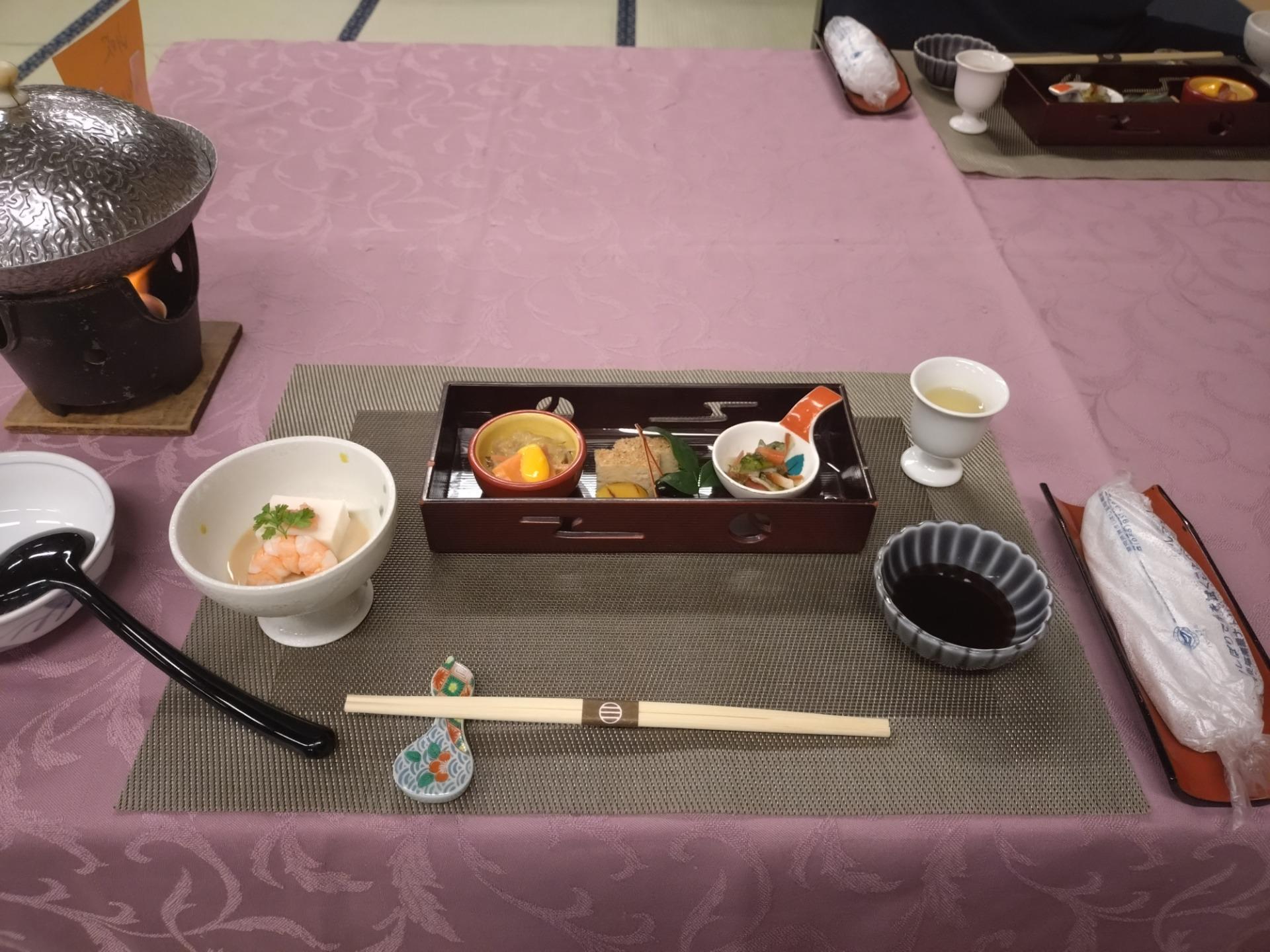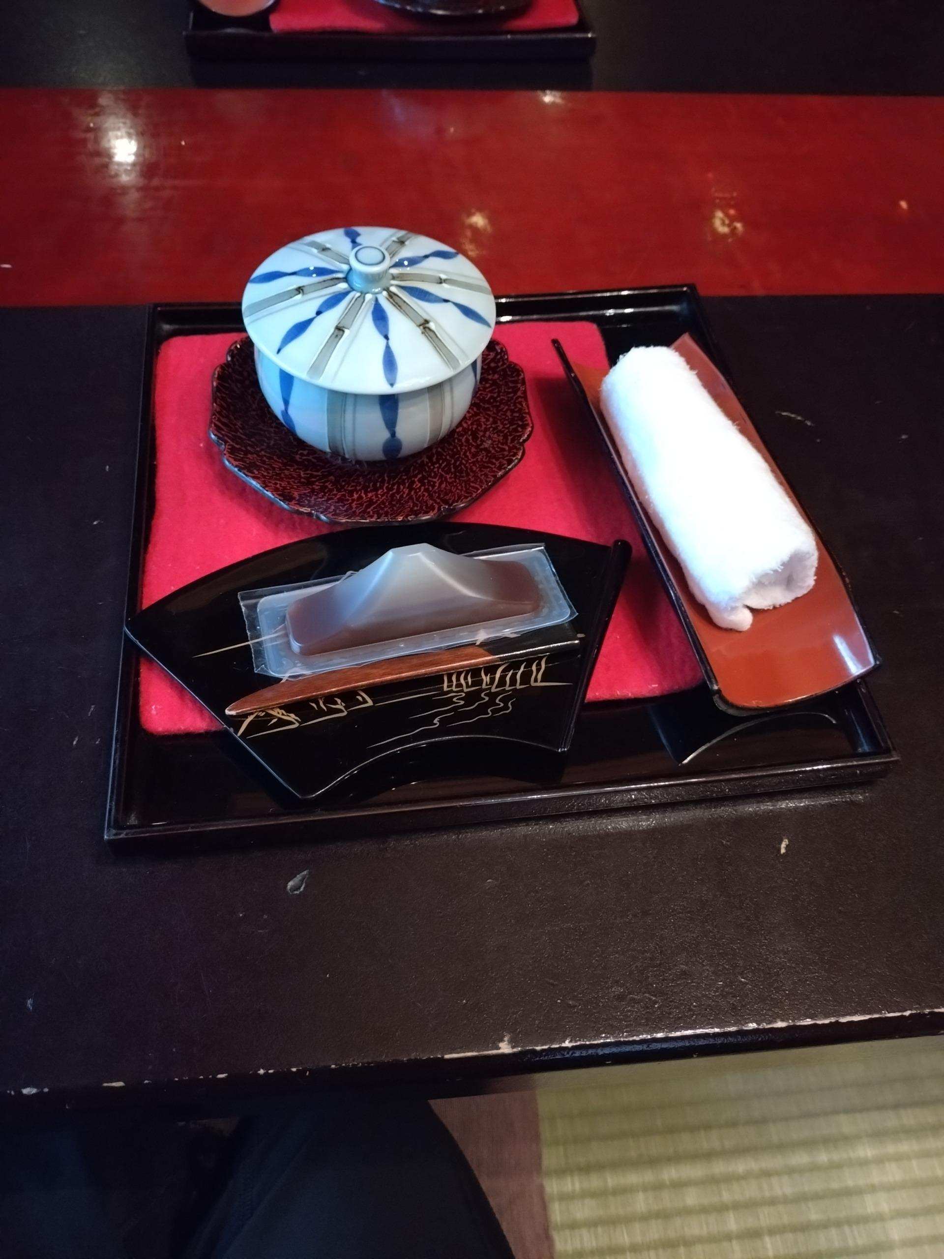 一進安田屋,第一眼就看到小香菇跟放在大廳的龍蝦玩偶,有種親切感想說聲「我回來啦」的感覺。再看看自己身上抱著曜的趴趴,嗯啊,沒有違和感啊。總之簡單跟服務人員講一下要check in後,就到大客廳享用迎賓甜點,富士山羊羹很甜,旁邊放的茶不太確定是什麼但有淡淡的海鮮的味道,木舌如我真的不太會形容,但大概就是那樣。接著服務人員帶我們簡單做個room tour之後,就放我們在房間裡休息了。這次住的房間是「山吹」,千歌的房間在斜上方,如果沒記錯的話那裡應該是月見草,同時也是太宰治撰寫《斜陽》的房間。雖然沒得真的在千歌房間跳到梨子房間(考據:就算住在那裡也不太可能辦到)不過可以隔著庭院看到三津濱,也是相當值得了。不過不過,最最最值得的還得是暖桌,暖桌真的是偉大的發明,晚上真的捨不得從裡面出來。