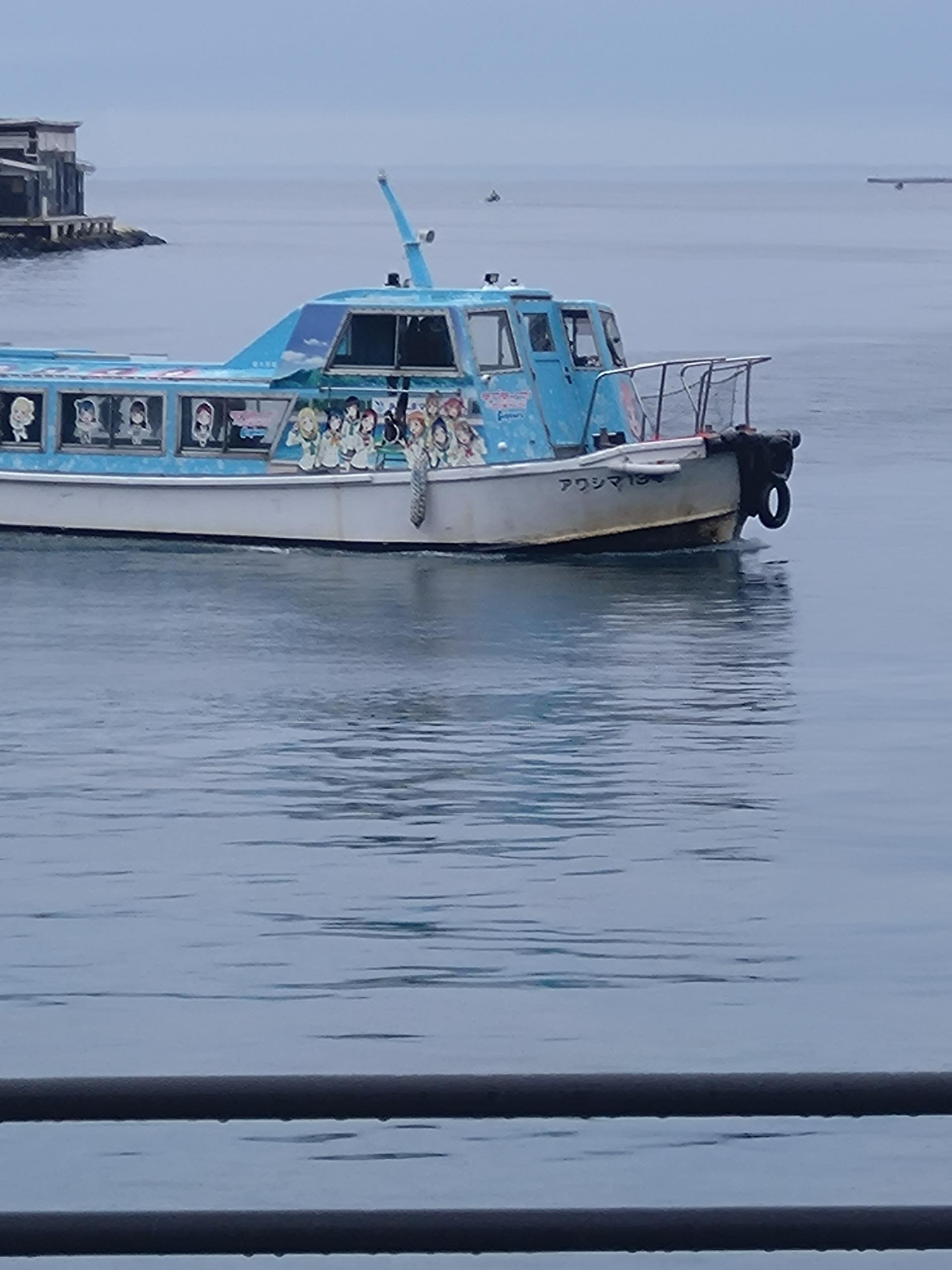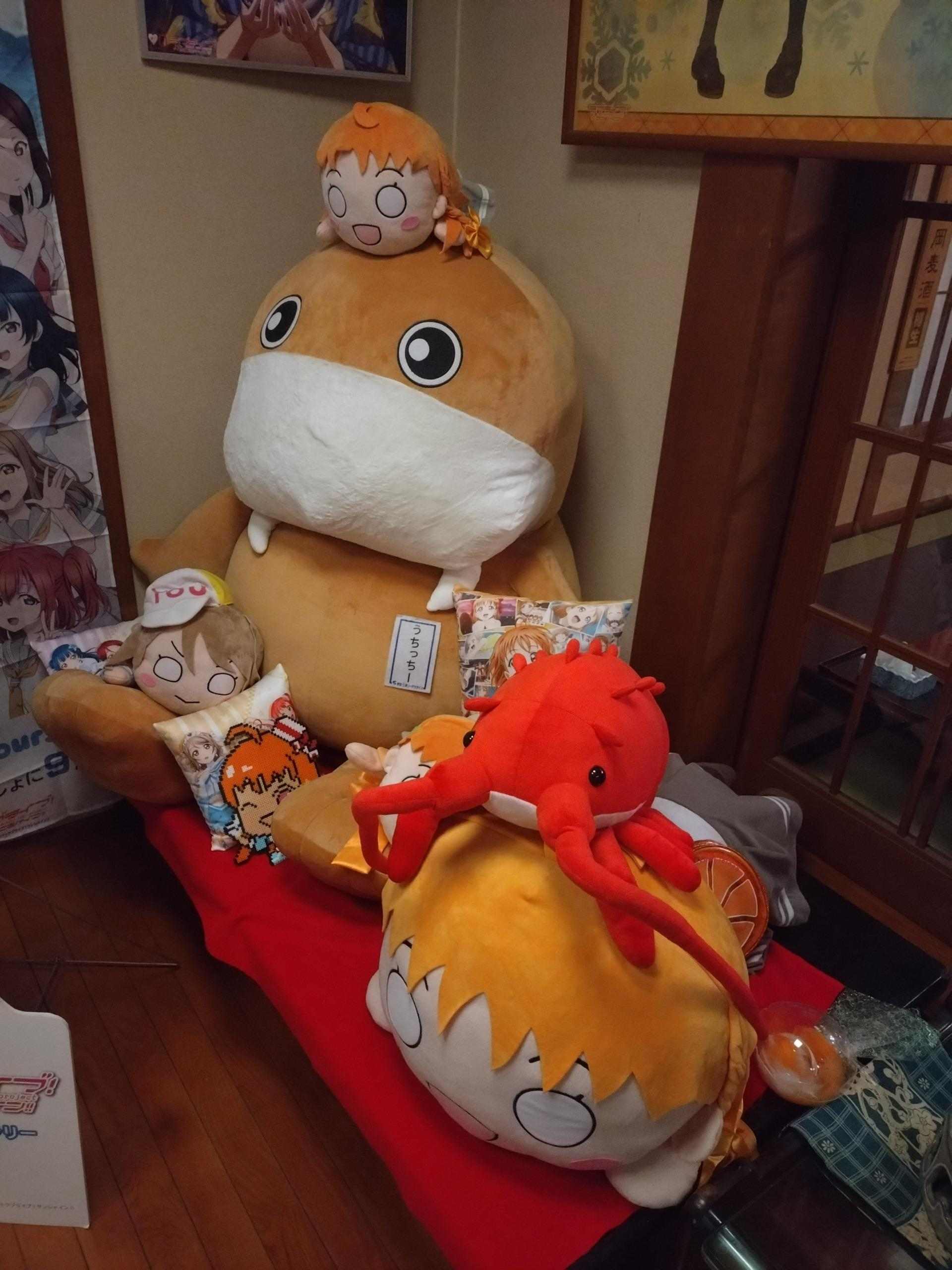 簡單洗個澡+泡溫泉之後(當天大澡堂沒人,賺爛了)就躺在超大房間滾來滾去、吃蜜柑、把蜜柑可樂喝得像蜜柑酒。幻想和Aqours九人待在一模一樣的環境下,生活著、玩樂著、痛苦的看著成績單(這件事我有忍住等到台灣再做)或許,或許真的可以在平凡的生活下創造奇蹟呢!這一路上遇到的沼津內浦居民們,辻宗商店、三之浦案內所的阿婆、安田屋旅館的接待人員(其實我在猜應該是女兒,但因為沒實際考證就還是寫接待人員吧,總之就是那個在永久hours MV 裡和あんちゃん搬棉被的那個)、被稱為「爸爸」的老闆等等等,讓我們能感受到「地元愛」,和Aqours連接的羈絆,在沼津深深的扎下了根。僅僅是普通的生活著、靜靜地望著日落的海灘、天氣好的時候看著富士山、和居民們聊天(先等等我把日文練好)都能感受到沼津給予著生活的動力,一步一步的向前走。縱使走的慵懶,但這正是愛著生活的表現吧,愛著沼津,愛著Aqours,僅僅需要普通的生活著,就能感受到了。