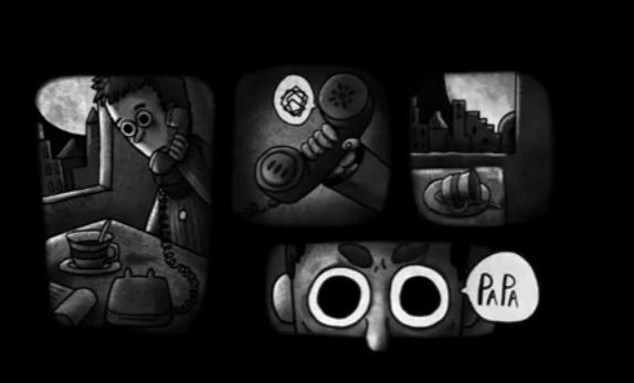 全黑白畫面加上卡通童趣的手繪畫風,讓人聯想到《膽小狗英雄》那種明明可愛,卻讓人心裡發毛的感覺。