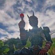 「啊……因為是左手,是沒什麼大礙……」威吹扶著自己纏好繃帶的左肩,瞄了一眼後道:「總之,我們趕快開始追查錯亂童子的下落吧。」