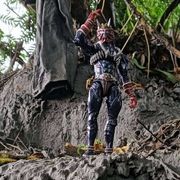 「唔……哈……!」錯亂童子抬起臉來,左右甩動身體,「噫!」威吹鬼就在此時翻過身來掙開束縛,順勢一個旋踢踢在錯亂童子側腰!