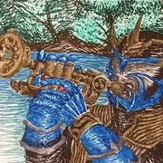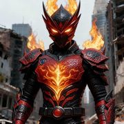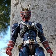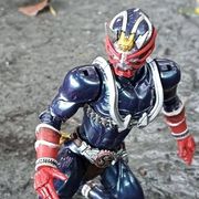 「嗯!」威吹鬼亦接近錯亂童子,趁著響鬼與其對峙中,將爆裂火炎鼓壓在錯亂童子胸甲上。「哈……哼!……」錯亂童子身體一頓,退後幾步扭動身軀,「咻……咚!」爆裂火炎鼓彈了出去!