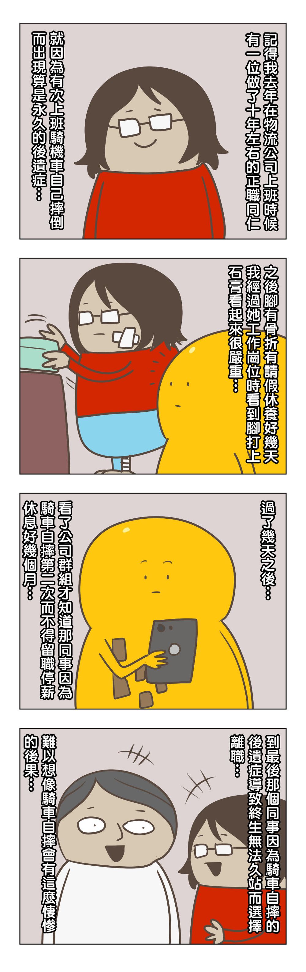 以前也有一位同事因為騎車遇到三寶...然後膝蓋就沒了......