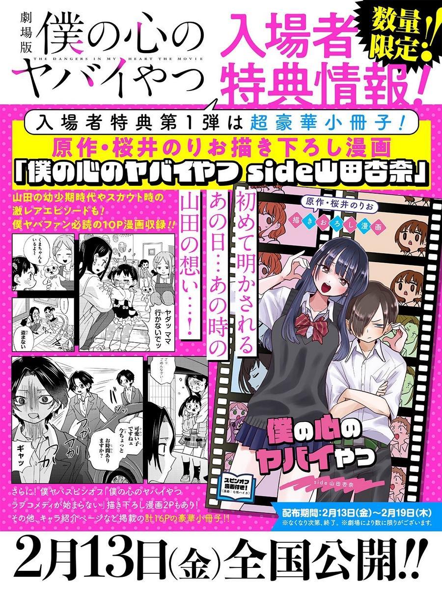 入場者特典已確定為原作者櫻井紀雄老師親自繪製的超豪華10頁漫畫。內容將揭曉山田的幼年時期、進入演藝圈的契機,以及「那一天」、「那一刻」山田的心路歷程等。此外,還收錄了外傳作品《我內心的糟糕念頭 戀愛喜劇開始不了》的2頁全新繪製漫畫。2026年2月13日(五)起限量發放!