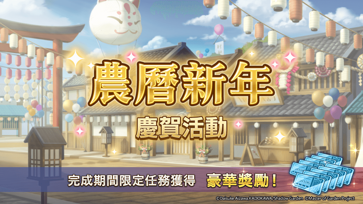 此外,於繁中版方面實施農曆新年活動,內容包含了 登入獎勵、特別任務、追加期間限定暗黑紙牌遊戲 以及販售 限時領取免費紅包&超划算組合包。