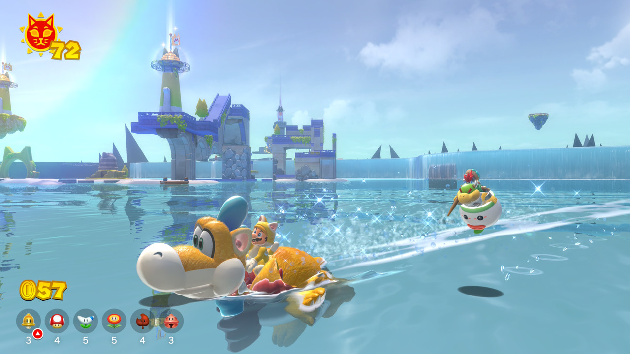 遊戲採開放式的闖關形式,分為三大區,每區有三個小島;大區域是按順序解鎖,小島與週邊地帶則可任意攻略;騎乘像耀西族的水龍普雷斯,在湖泊上遊覽,玩起來的感覺很自由。