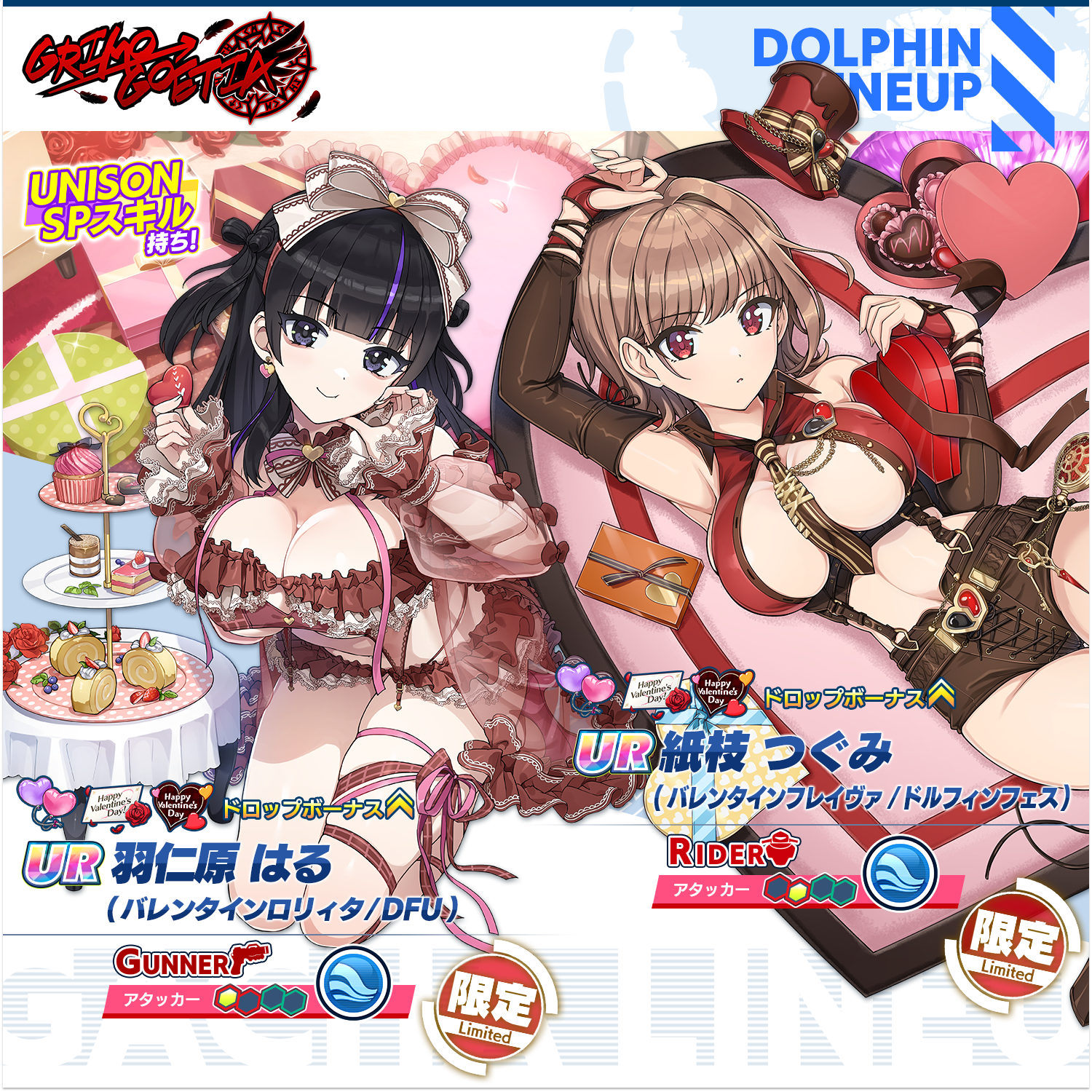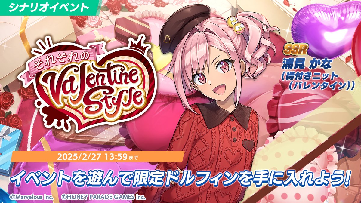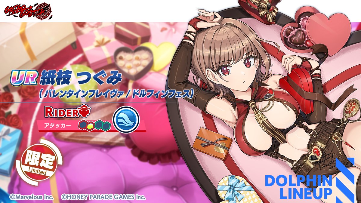 本次 PU 的情人節新海豚為 UR 紙枝繼未(情人節個人特色/DF) 紙枝つぐみ(バレンタインフレイヴァ/DF) 以及 UR 羽仁原春(情人節蘿莉塔/DFU) 羽仁原はる(バレンタインロリィタ/DFU) 。