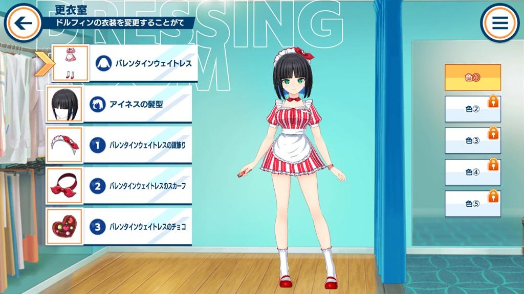 02/12 期間限定販售 情人節女服務生組合包 (バレンタインウェイトレスパック) ,包含衣裝「 情人節女服務生 (バレンタインウェイトレス) 」、「 情人節女服務生的頭飾 (バレンタインウェイトレスの頭飾り) 」、「 情人節女服務生的領巾 (バレンタインウェイトレスのスカーフ) 」以及「 情人節女服務生的巧克力 (バレンタインウェイトレスのチョコ) 」。