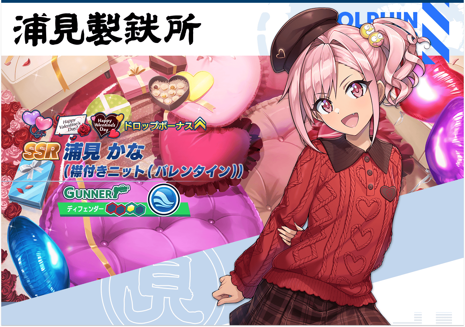 透過活動限定商店可以獲得海豚 SSR 浦見加奈(翻領針織(情人節)) 浦見かな(襟付きニット(バレンタイン)) 。
