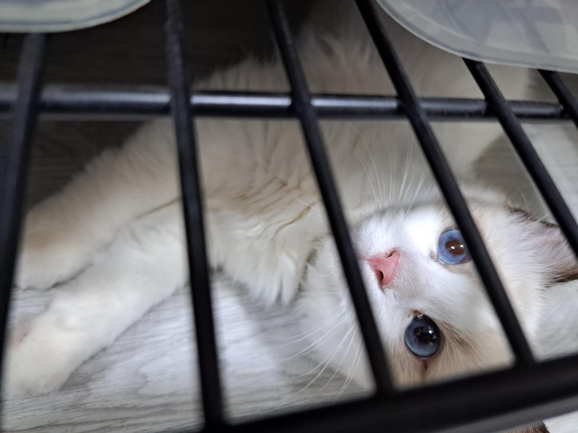 晚間,家長把貓弟和貓妹關進了一個對小貓而言夠大,但大貓只能原地轉圈的隔離籠。