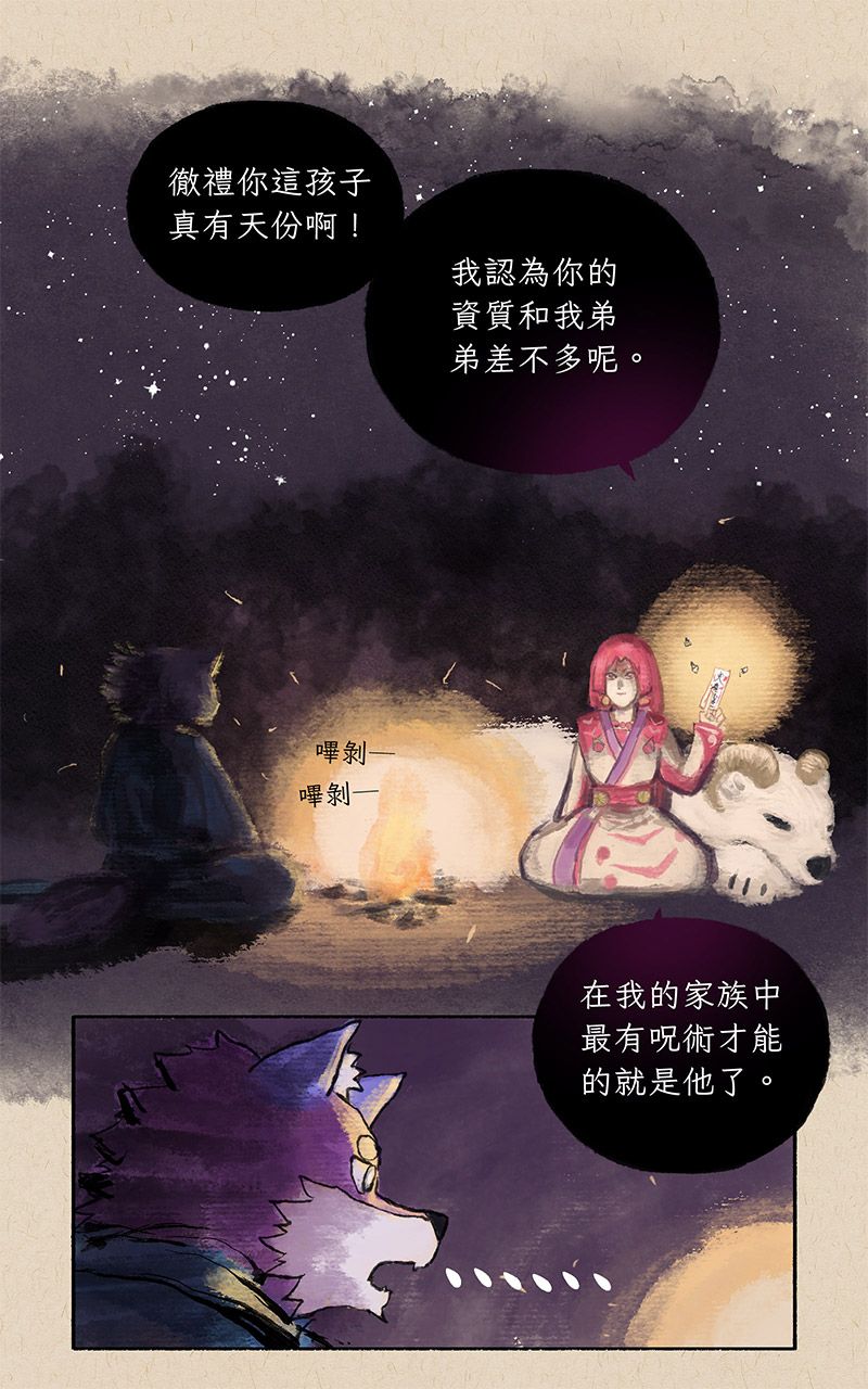 這次主要的內容,是徹徹跟著師父羽維學習呪術的過程,還有他為了掩人耳目,也在村子裡和其他獸人小孩一起學習武術。他的師父和父親的教育理念也完全不同。