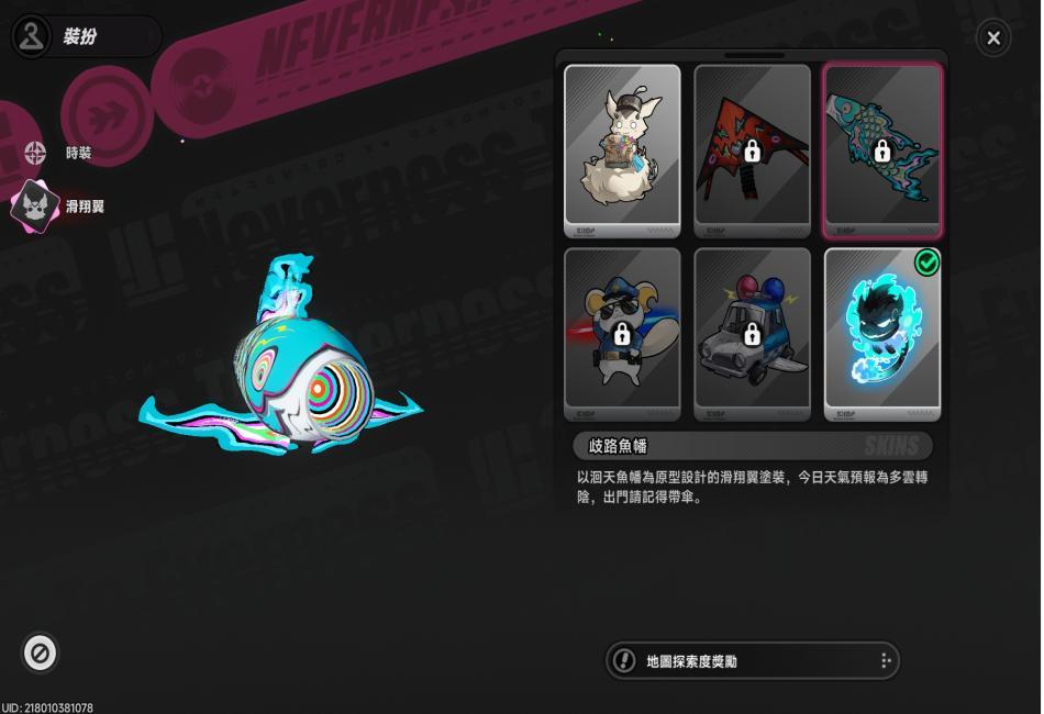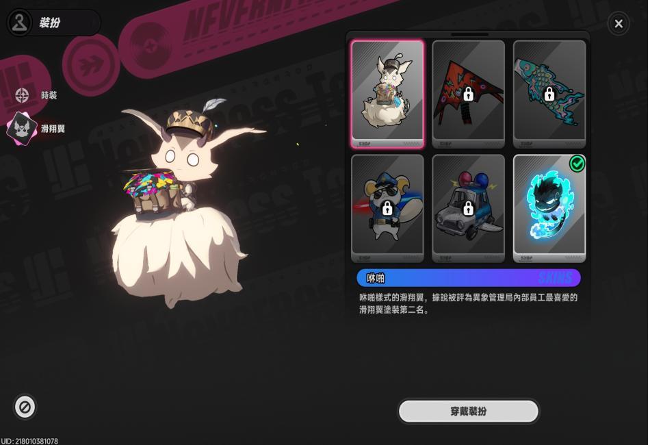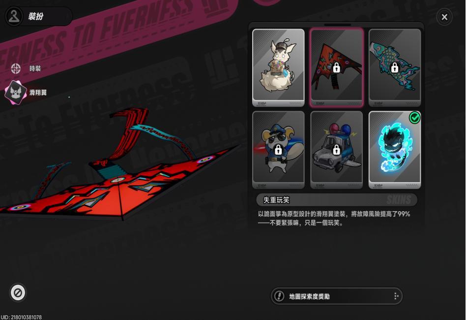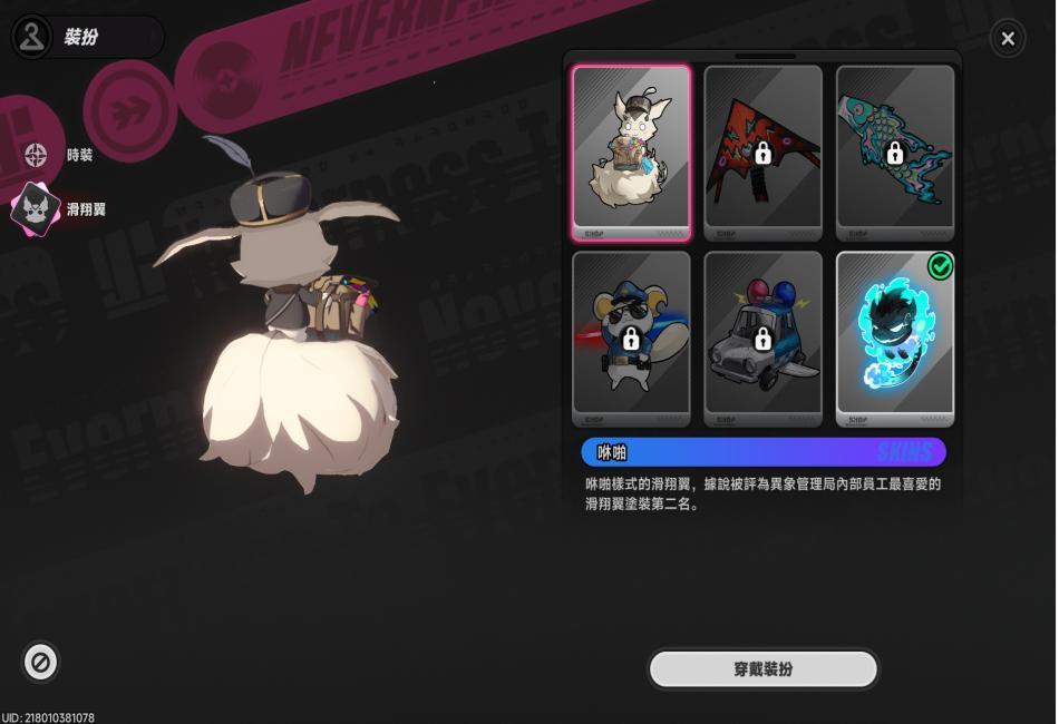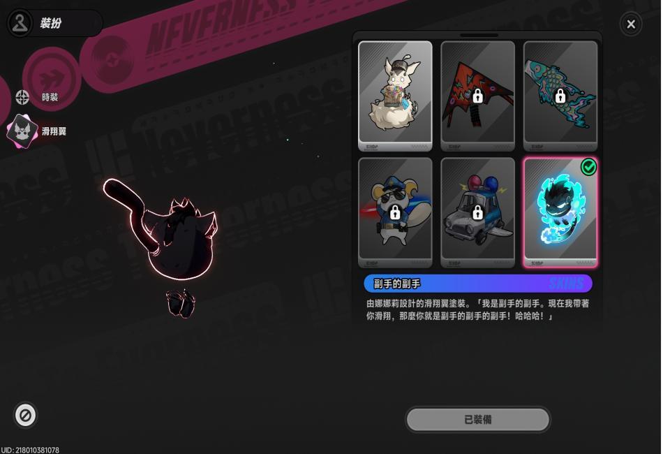 娜娜莉使用滑翔翼(咻啪,預設造型)。