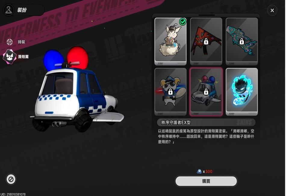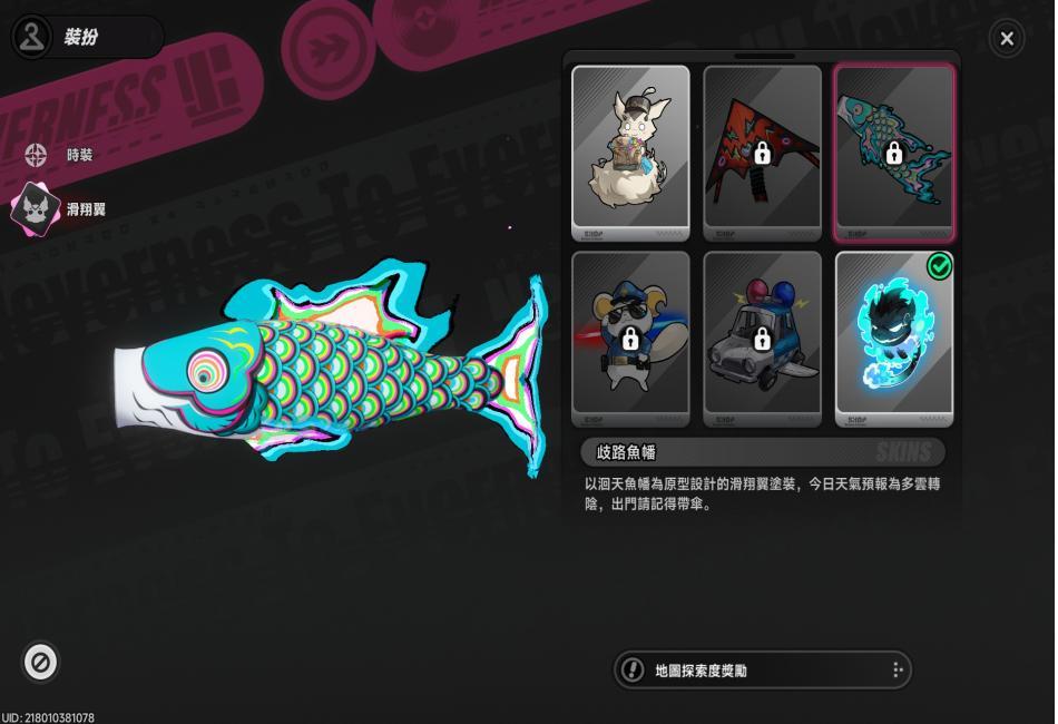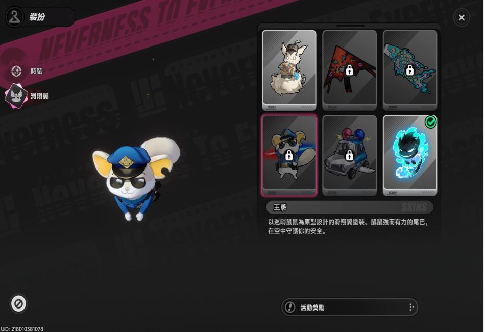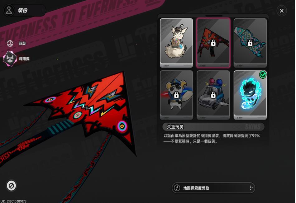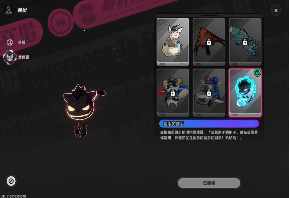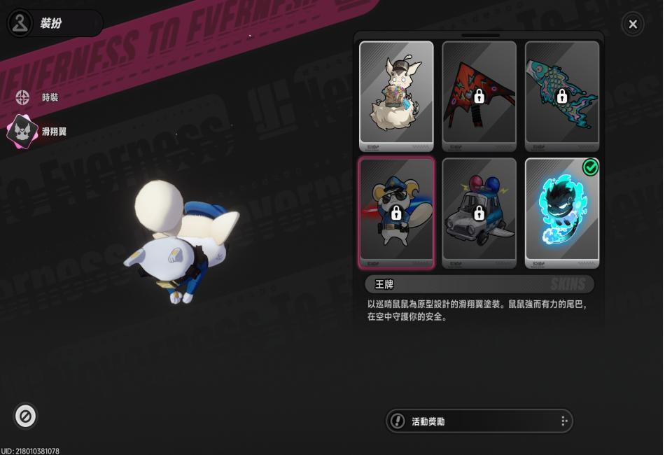 娜娜莉使用滑翔翼(咻啪,預設造型)。