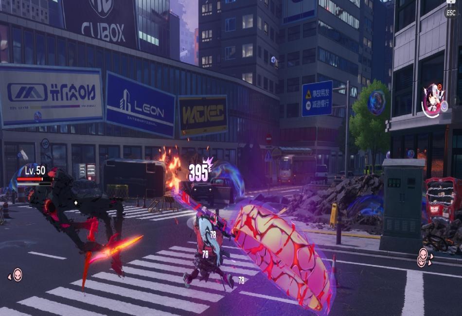 (4):都市大地圖探索自由程度高,角色攻擊與搭乘交通工具時物件會產生"反饋"例如損壞、碰撞。