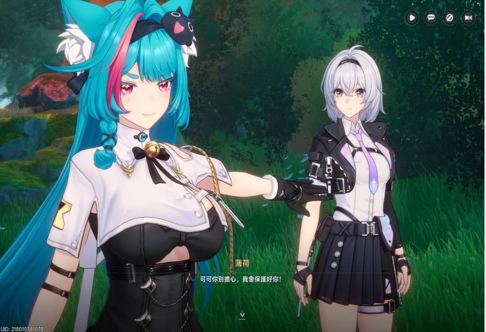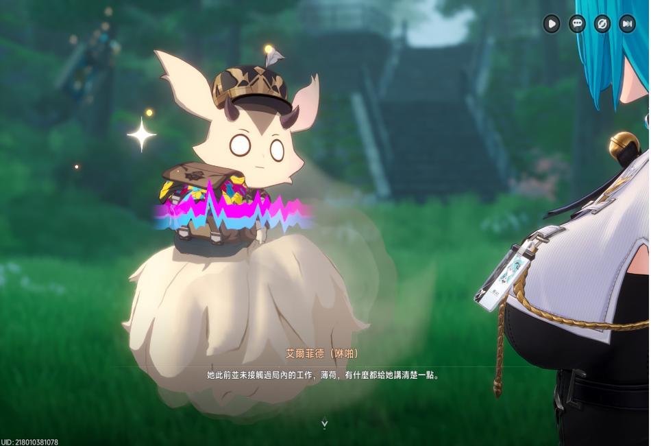 交談後得知,眼前一頭翠綠長髮獸人貓娘名字為薄荷,是收容二組成員之一,還有-最容易被異象欺騙的人;片刻後,薄荷決定跟我們一同前往局長辦公室。