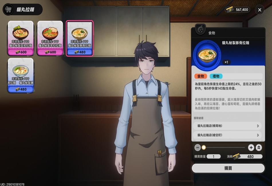 (8):重要商店主NPC沒有語音(例如歡迎、閒聊、送客等...),角色建模與路人重複相似度過高,無法充分體現出店主人與店舖特色(例如貓丸拉麵,不一定要是"人類",也可以用貓獸人作為店主,並加入料理烹飪時、分裝商品時動畫,亦或是多組閒聊語音(語音單次播放間隔每次約20-30秒左右,避免重覆播放頻率過高會讓玩家感到疲勞,並設定播放感應範圍,避免過於刻意突兀),讓玩家更明確知道自己正在"購物",更有沉浸感。