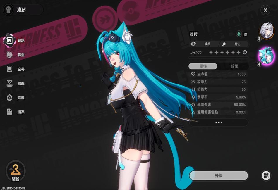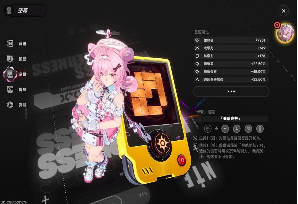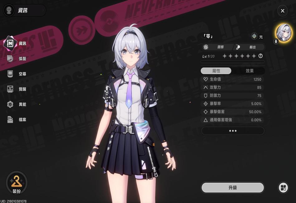 說明:本作主角(女性),異能屬性為光,型態為本能,定位為輸出。