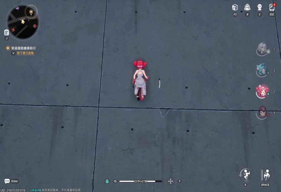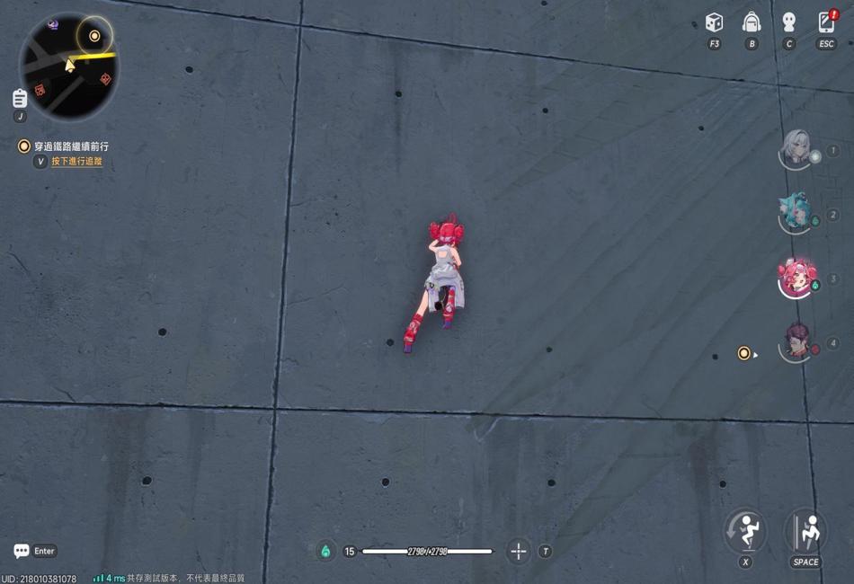 說明:按Esc叫出主菜單時鏡頭視角會變為後視鏡頭,當前操作角色會維持當前動作並定格。